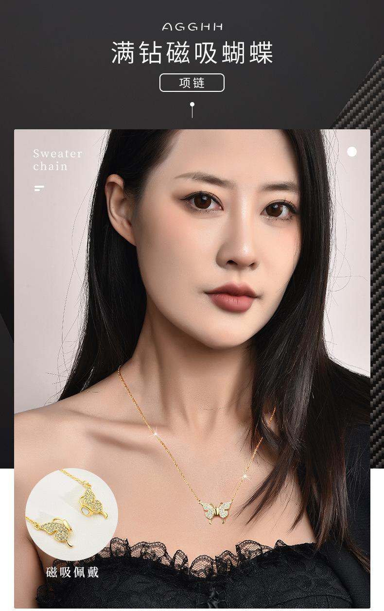 厂家直供蝴蝶磁吸扣项链女锁骨链夏季时尚小众设计高级时尚不撞款