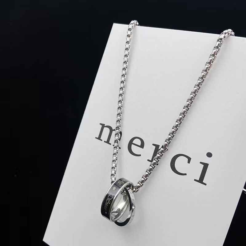 钛钢不掉色双圆环项链男女街头嘻哈戒指吊坠百搭简约无性别配饰潮