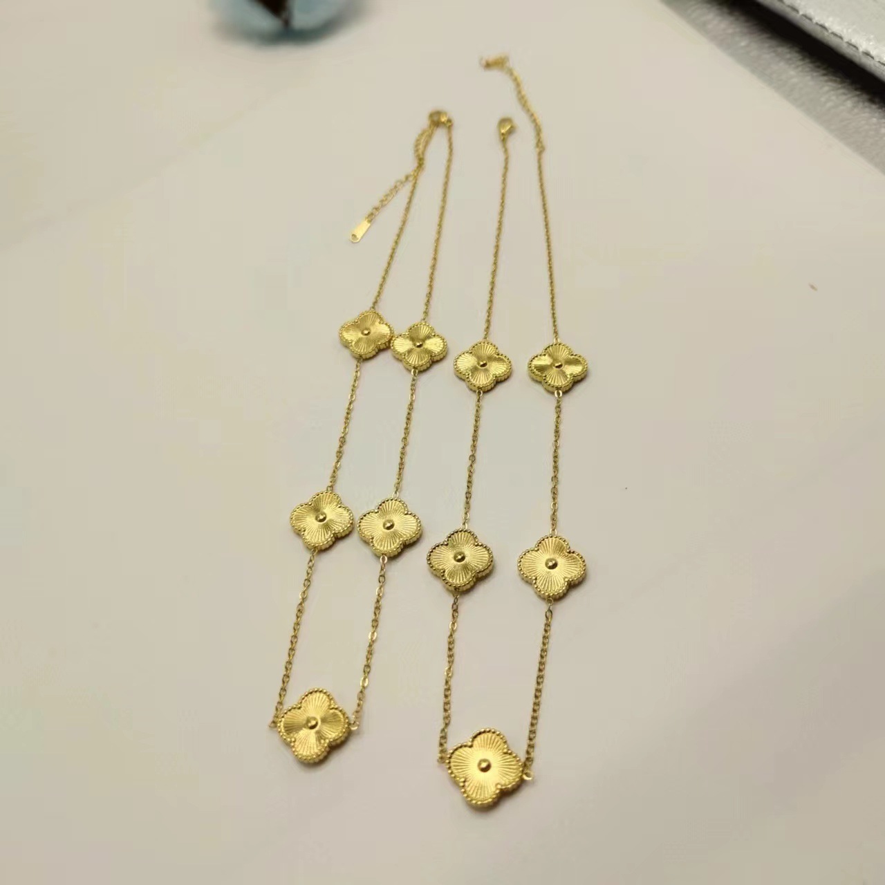 跨境时尚不锈钢四叶草项链百搭18k金五花四叶草吊坠项链女批发