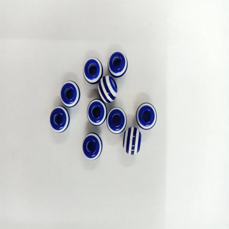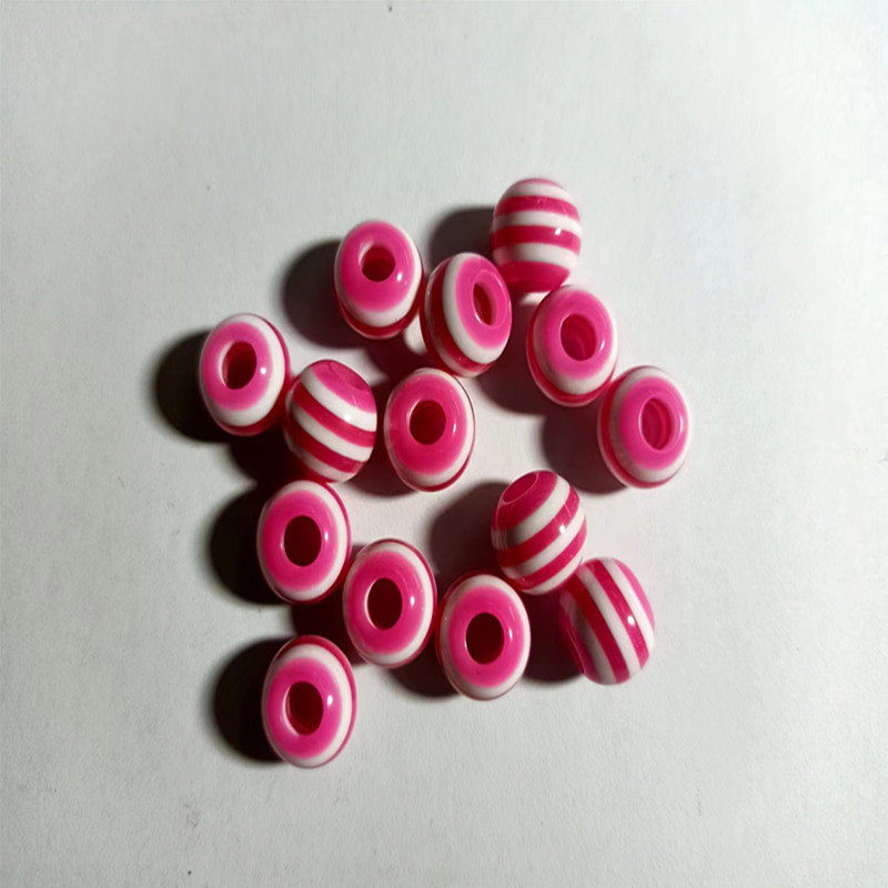 10mm圆珠树脂条纹散珠4mm孔七彩圆珠diy手链玩具手办配件厂家直销