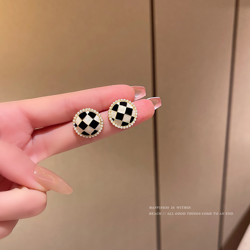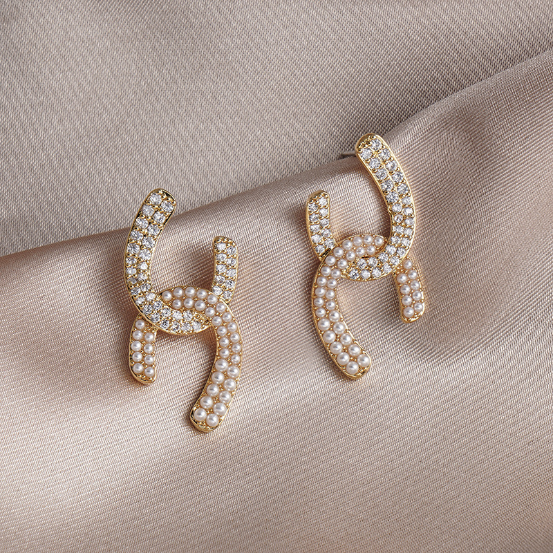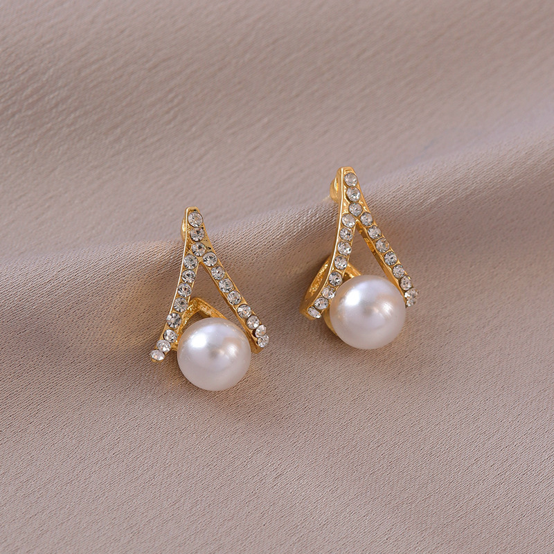 925银针气质高级感满钻珍珠耳环女ins风几何耳钉韩国轻奢耳饰批发