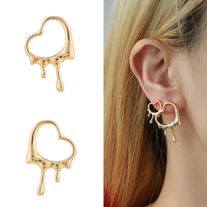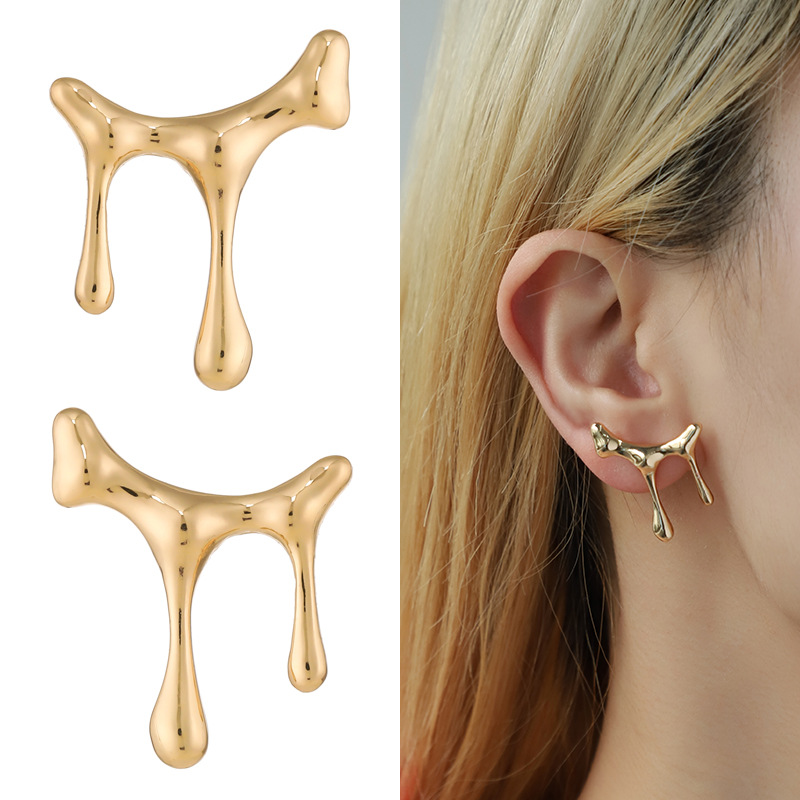 2026新款自然熔岩金属耳钉女 欧美跨境ins风液态金属时尚耳环耳饰