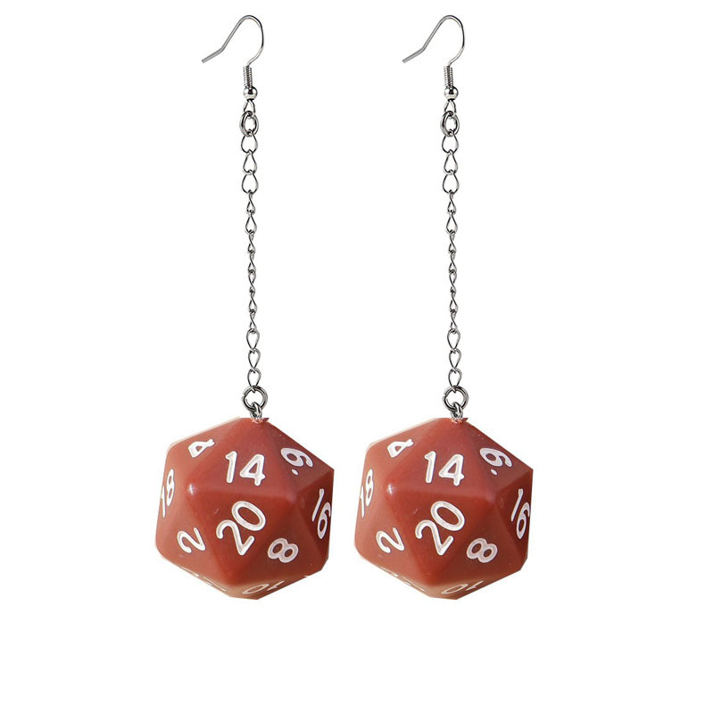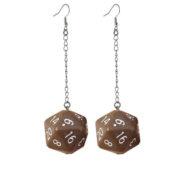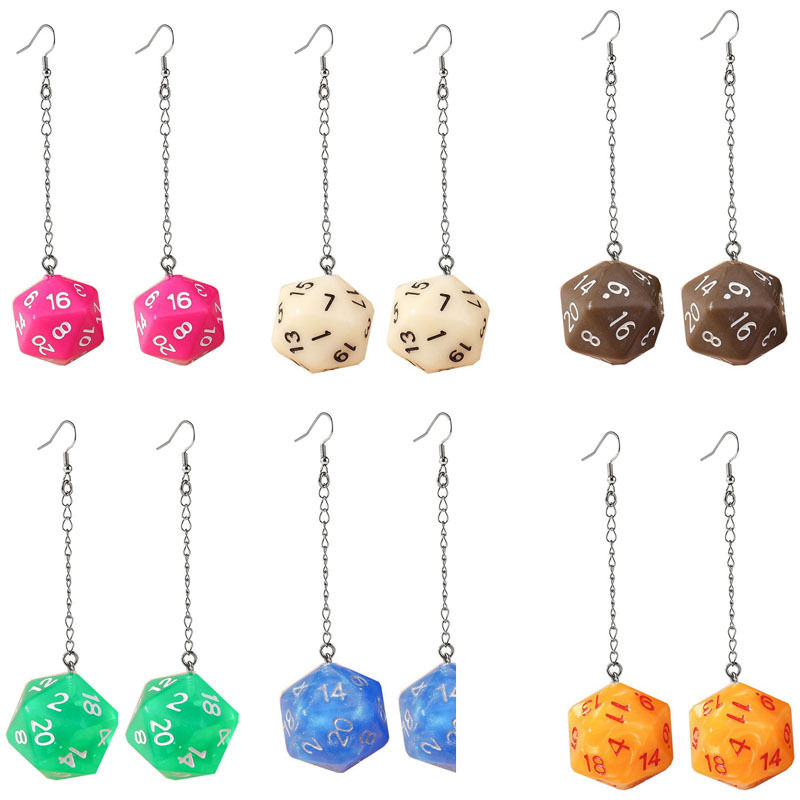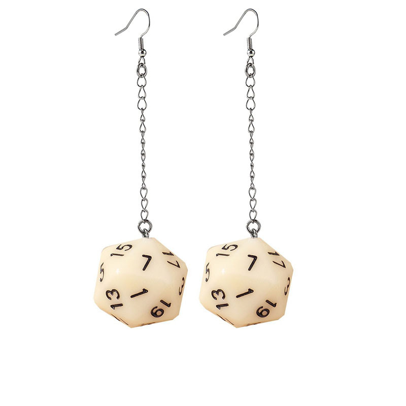 2023新款趣味骰子链条耳环几何20切面数字耳坠时尚百搭韩系耳饰
