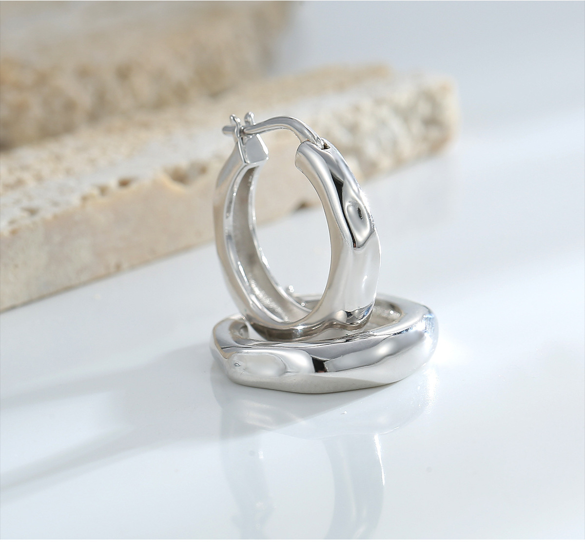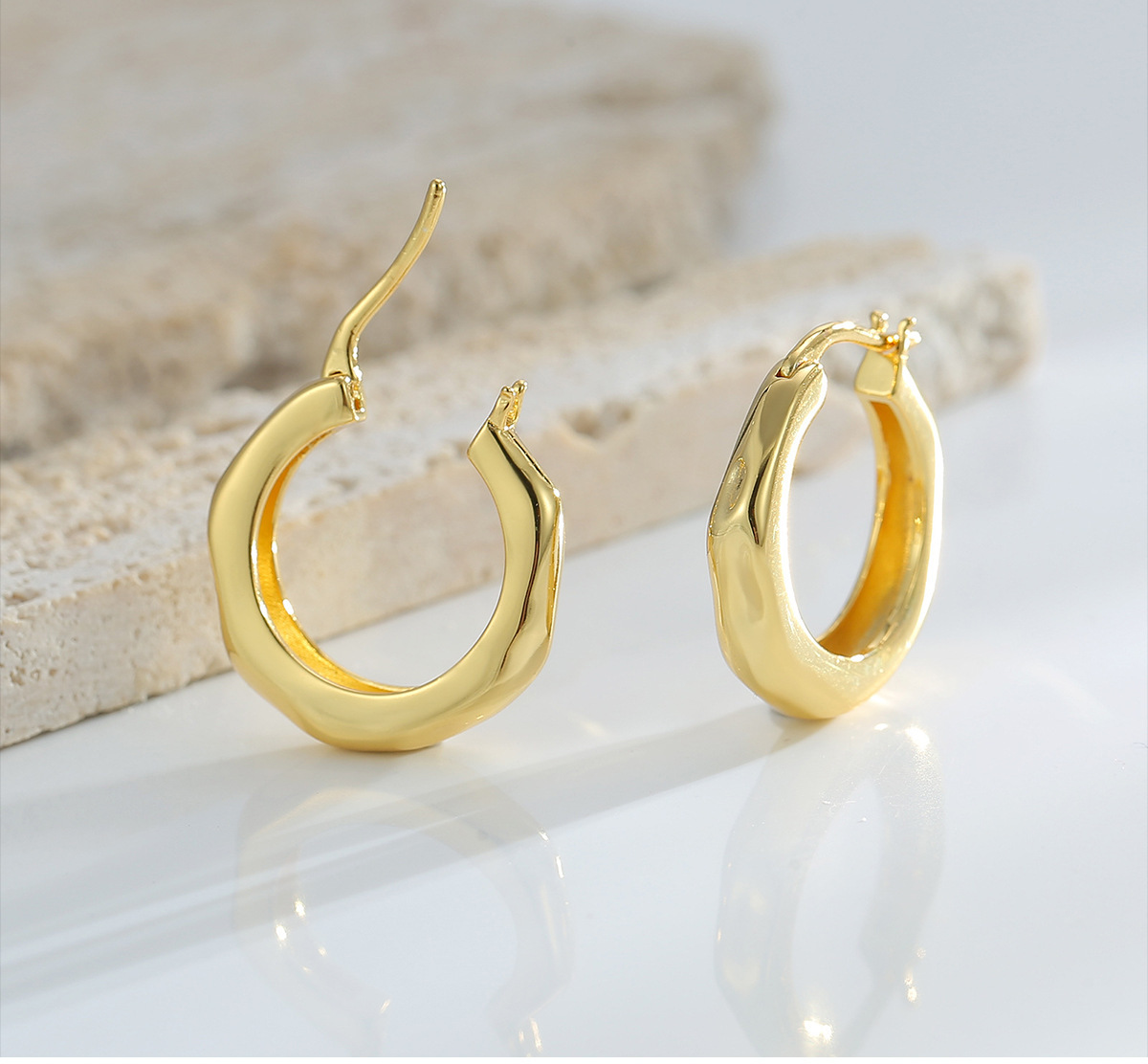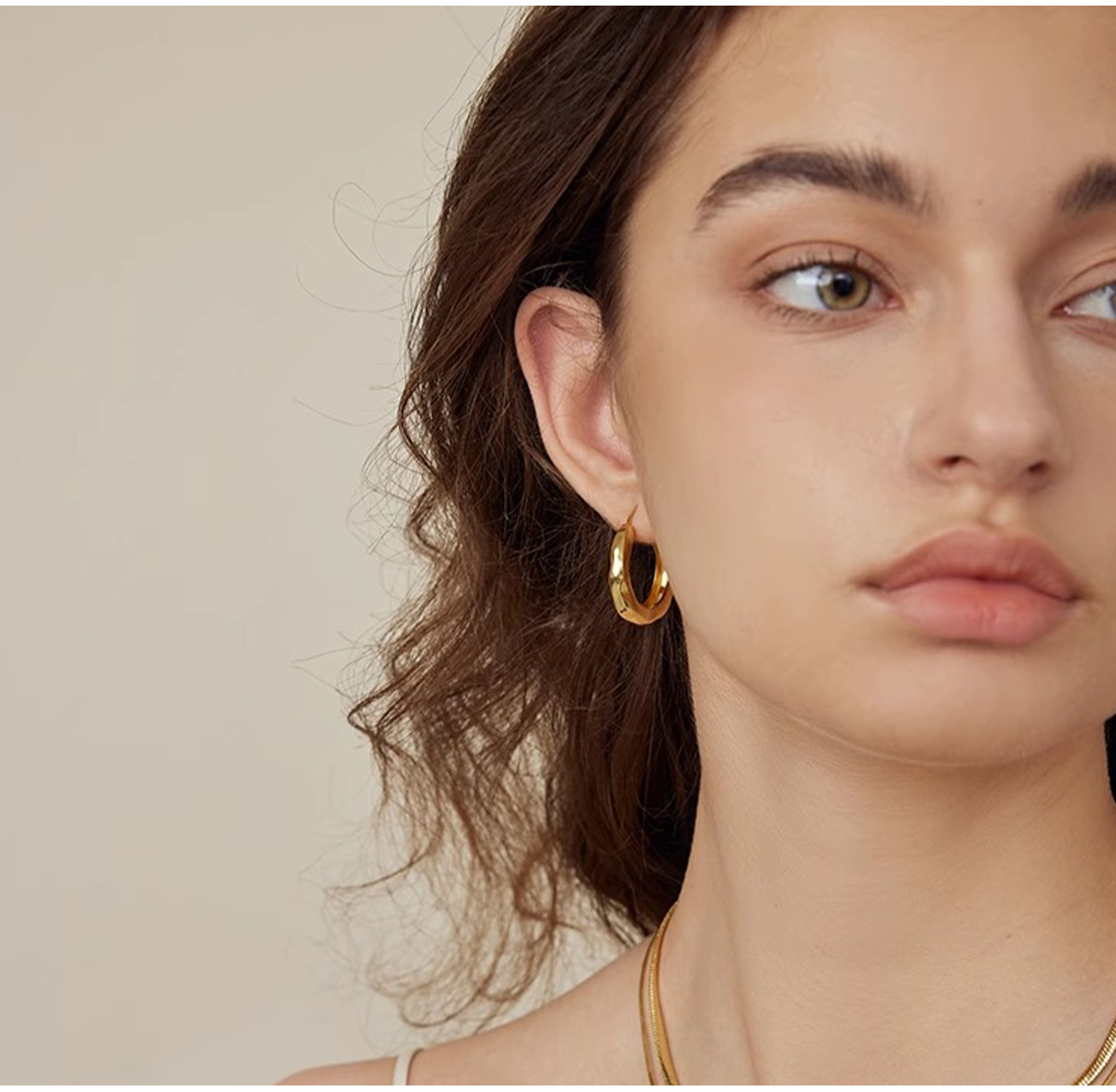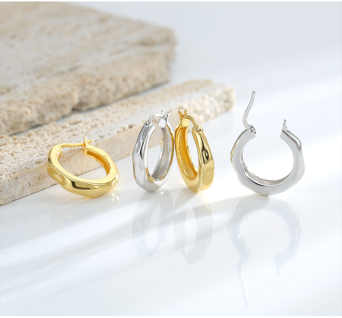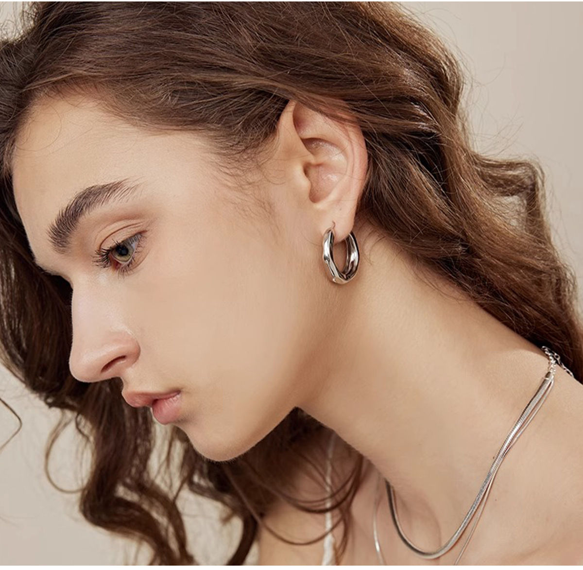 s925纯银欧美复古潺流素圈耳环女轻奢小众夸张设计高级感百搭耳饰