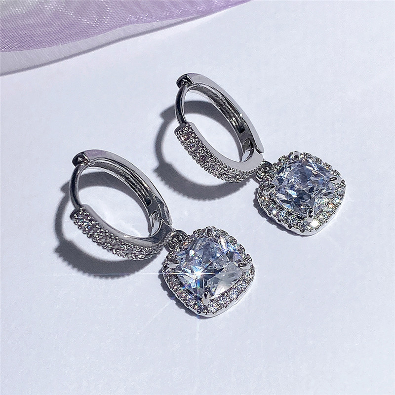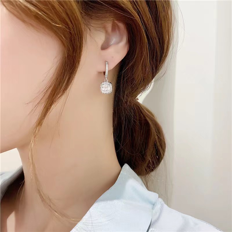 新款方包耳环时尚璀璨圆钻八心八箭1克拉锆石女耳坠轻奢通勤耳钩