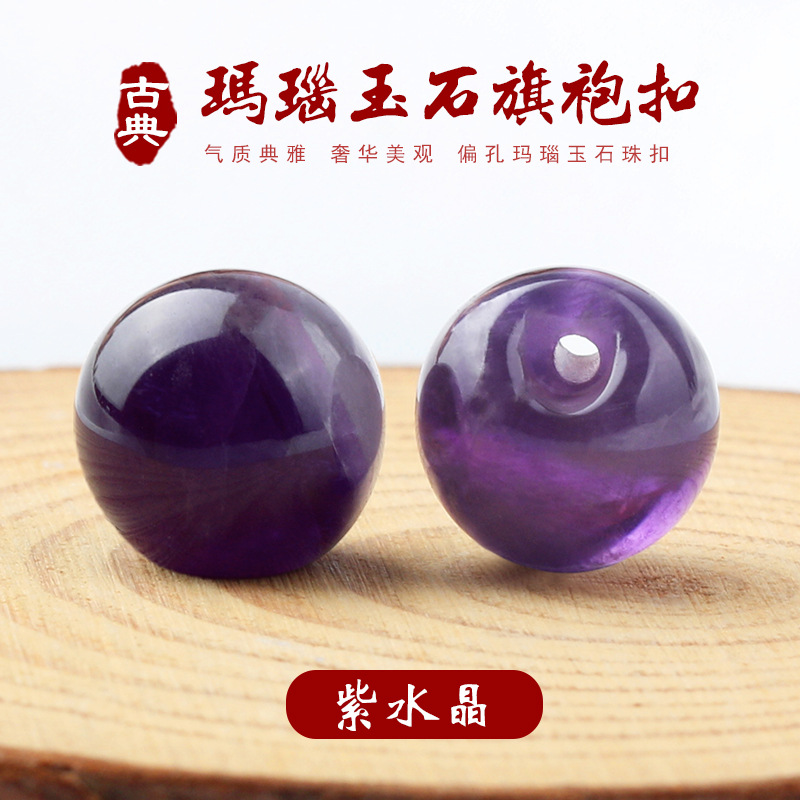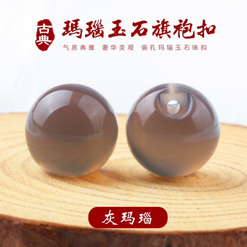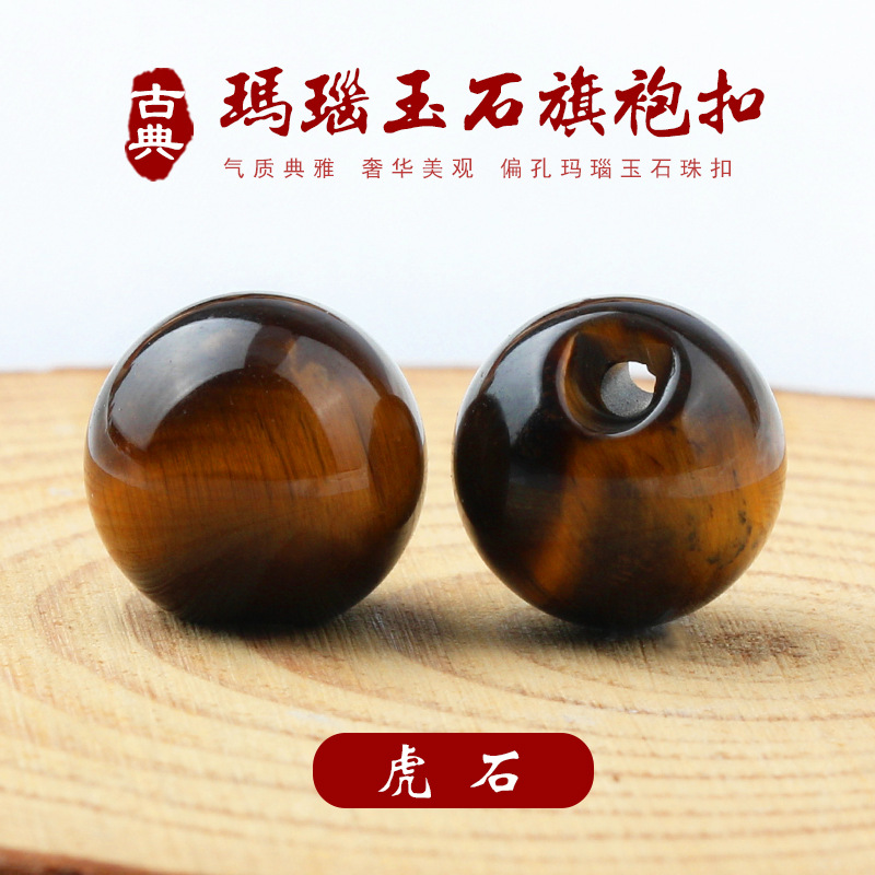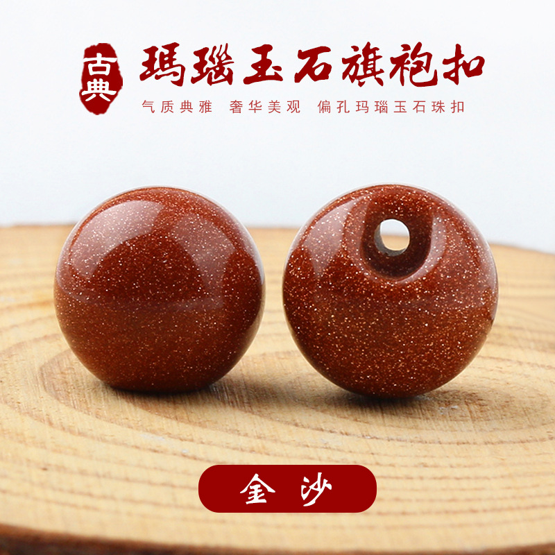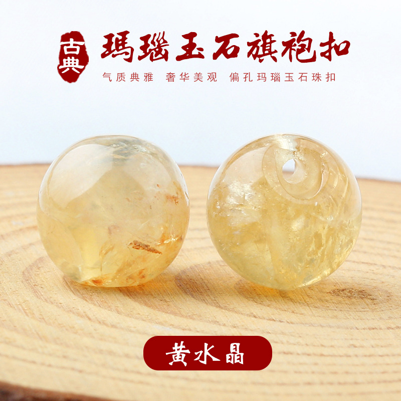 厂家直销玉石旗袍纽扣古装玛瑙珠扣偏孔扣子散珠东陵老黄玉圆珠扣