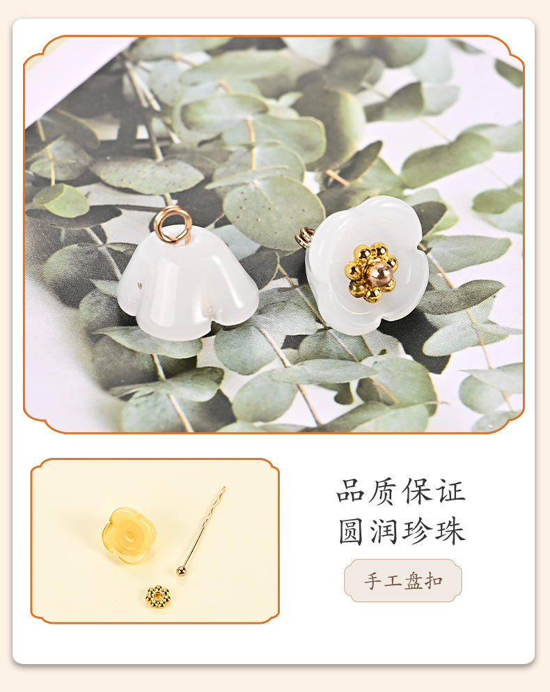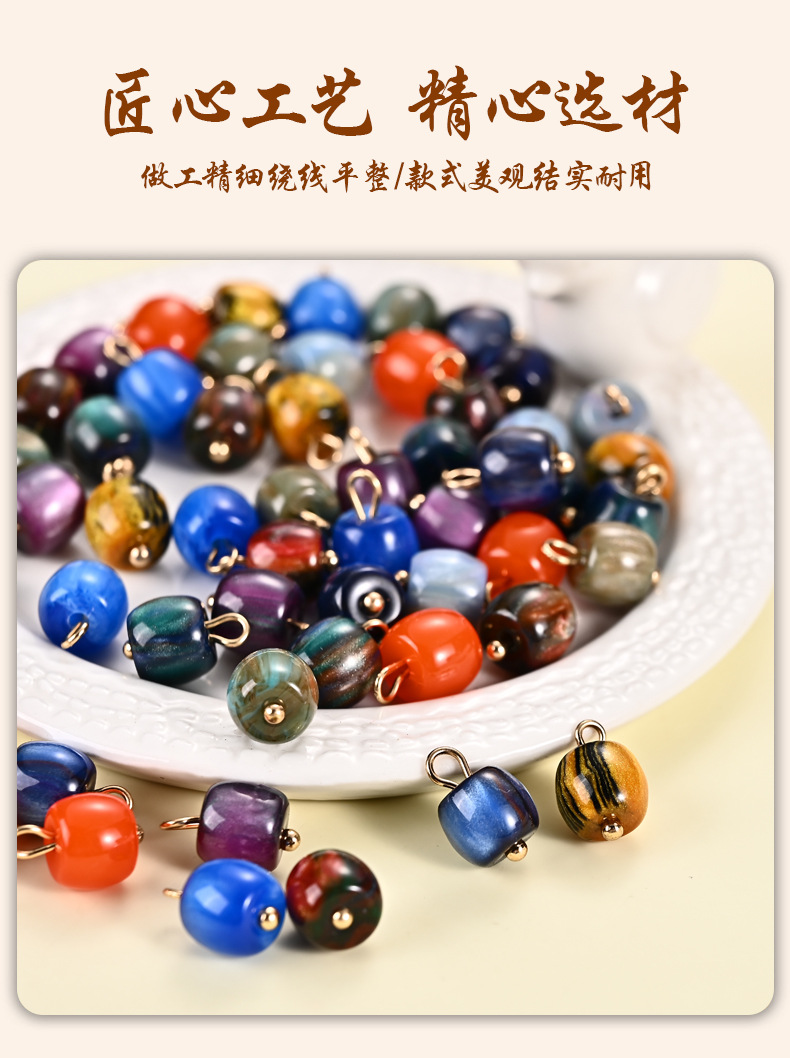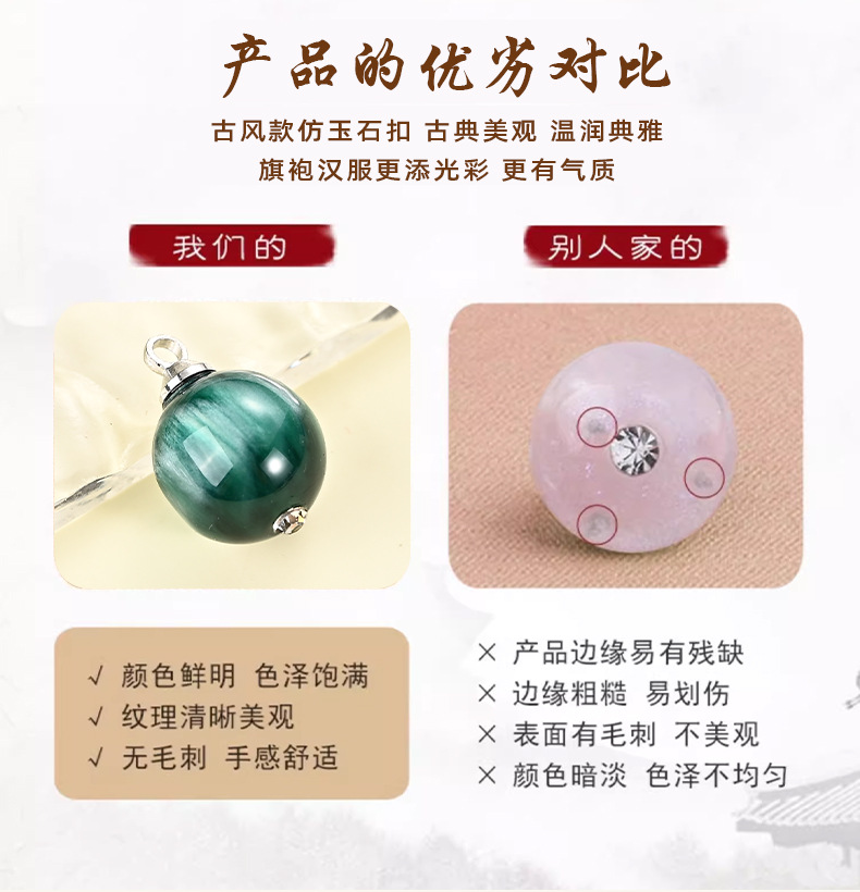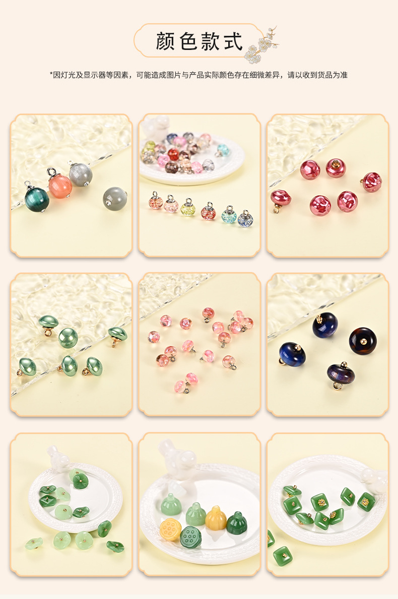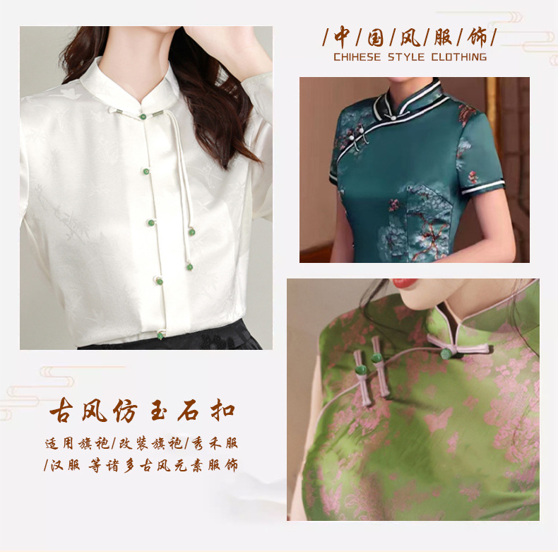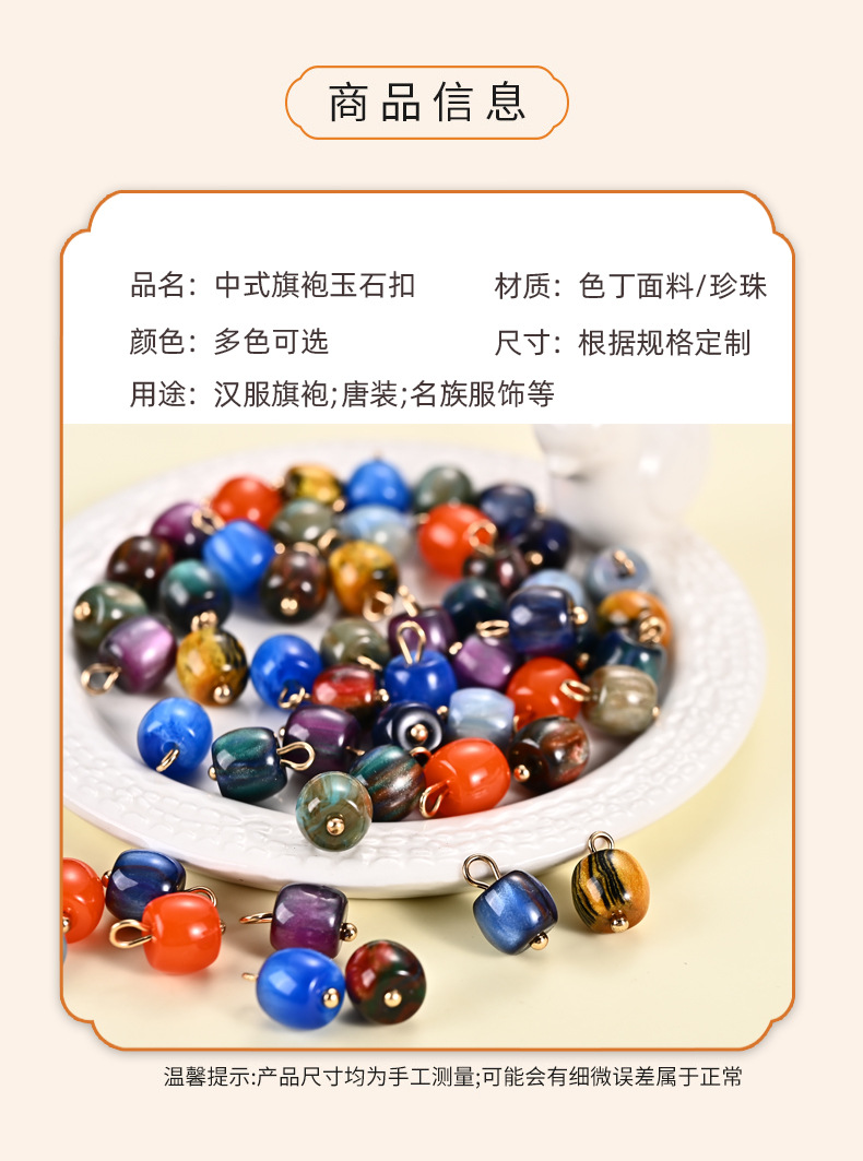 玉石旗袍扣海柳玉鼓服装辅料彩花扁珠汉服古典珠扣国风纽扣