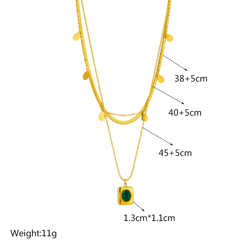 小众轻奢复古设计钛钢祖母绿锆石耳环项链气质女首饰套装
