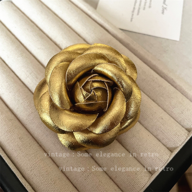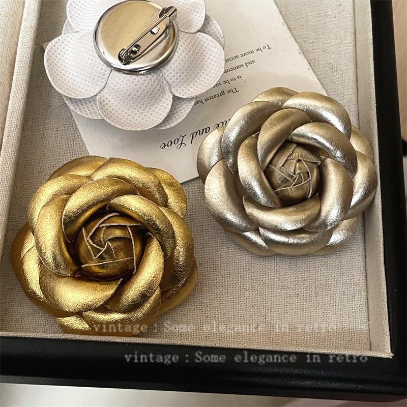 2024小香风山茶花胸针高级花朵别针优雅法式皮质胸花服装饰品