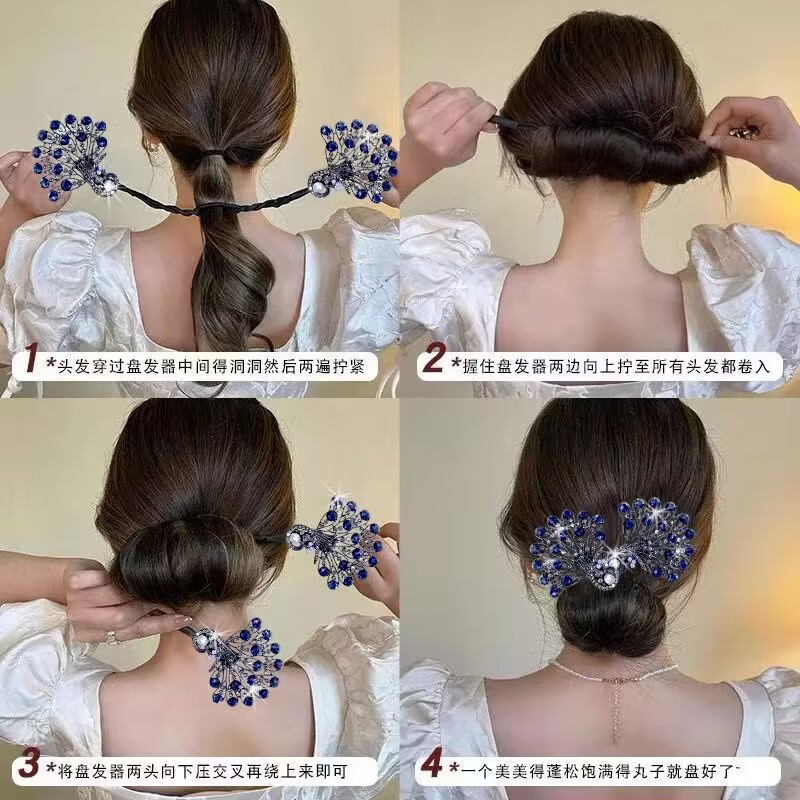 高级感孔雀盘发器优雅头饰后脑勺懒人丸子头固定神器扭扭夹女发饰
