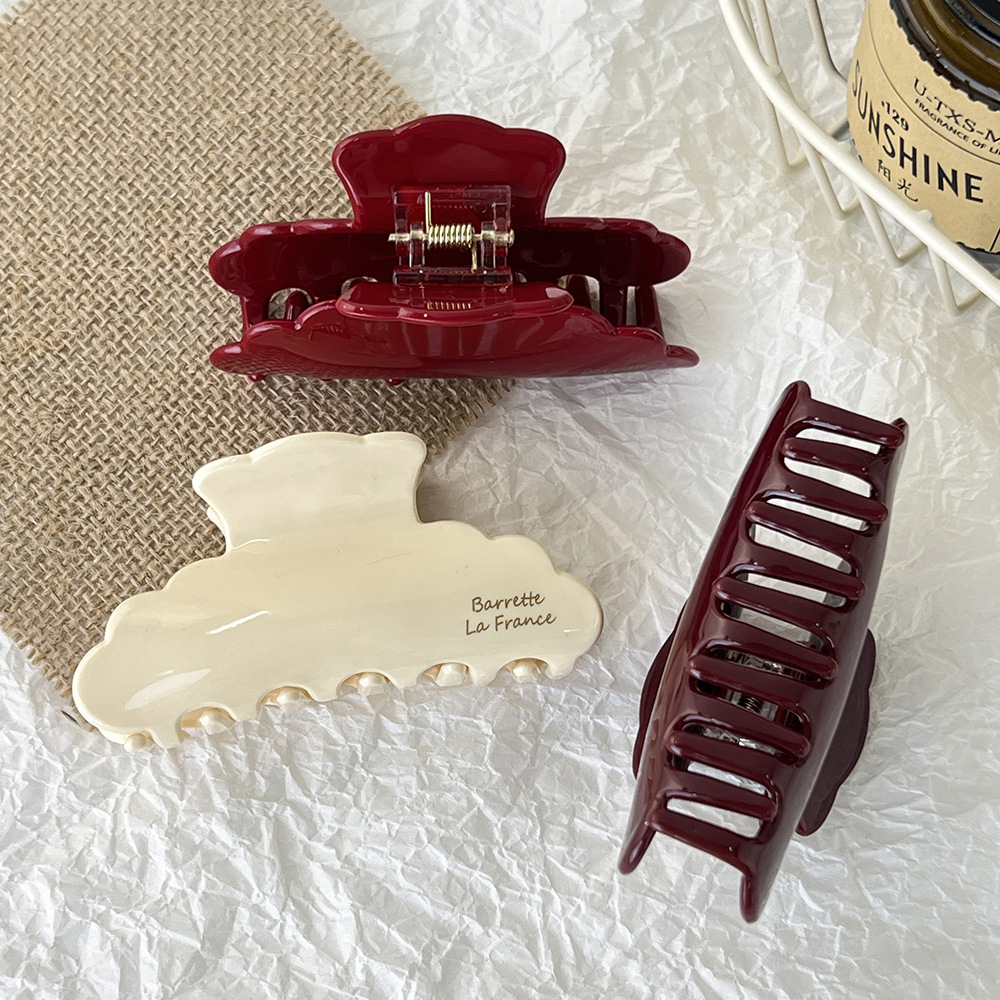 2025新款高级感复古红色花边金标抓夹韩版发夹半扎发鲨鱼夹子发夹