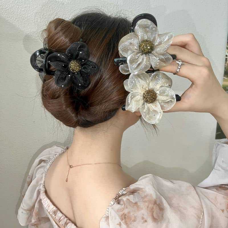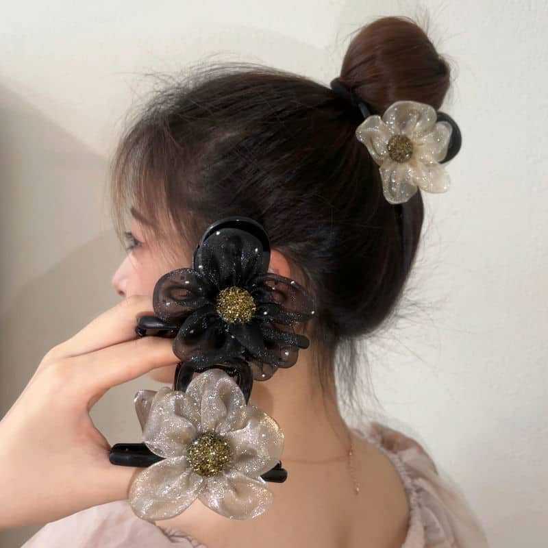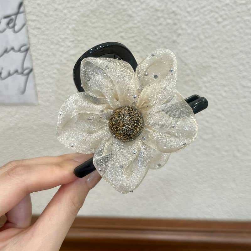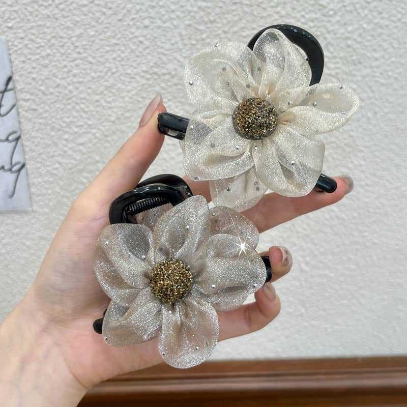 网纱闪钻太阳花抓夹女时尚简约盘发鲨鱼夹子后脑勺高级感花朵发夹