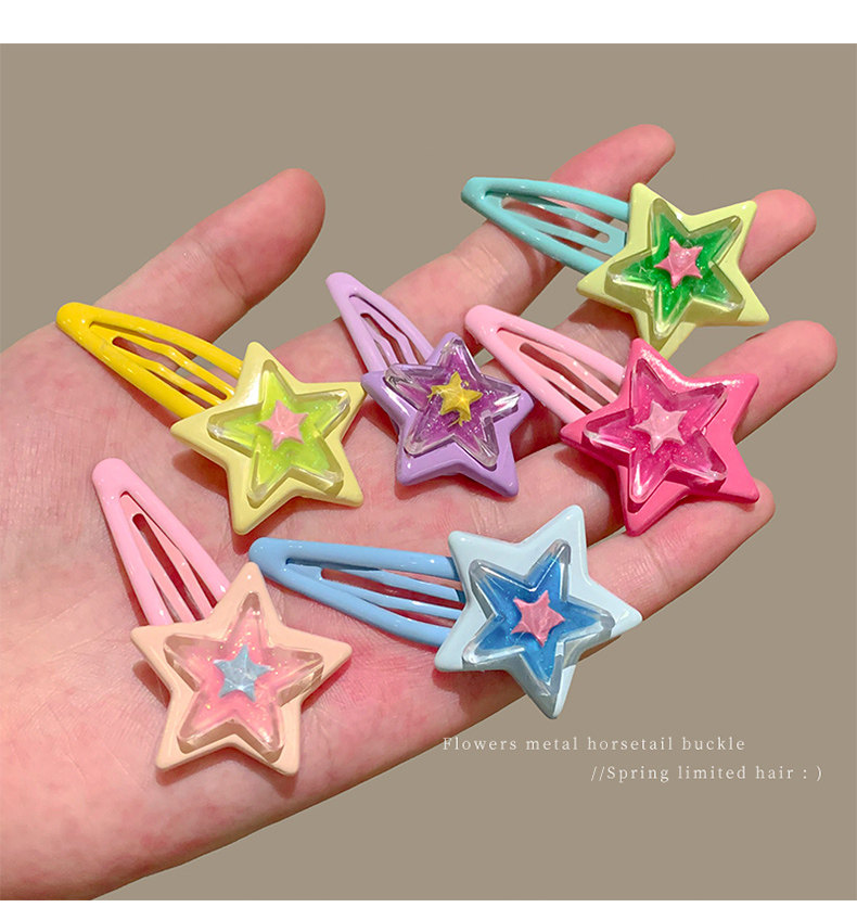 多巴胺星星发夹侧边夹前额刘海bb夹子少女可爱鸭嘴夹发卡甜美头饰