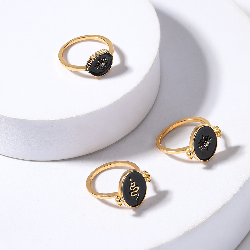 法式复古简约饰品圆盘镶钻星芒太阳叠戴戒指套装蛇形电镀女士指环