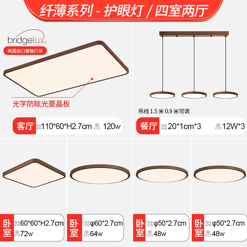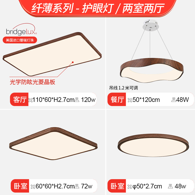 2025新款客厅吸顶灯卧室普瑞护眼套餐组合中古风胡桃木色灯具大全