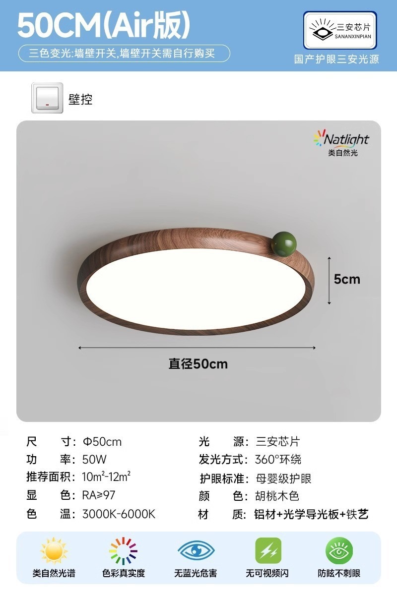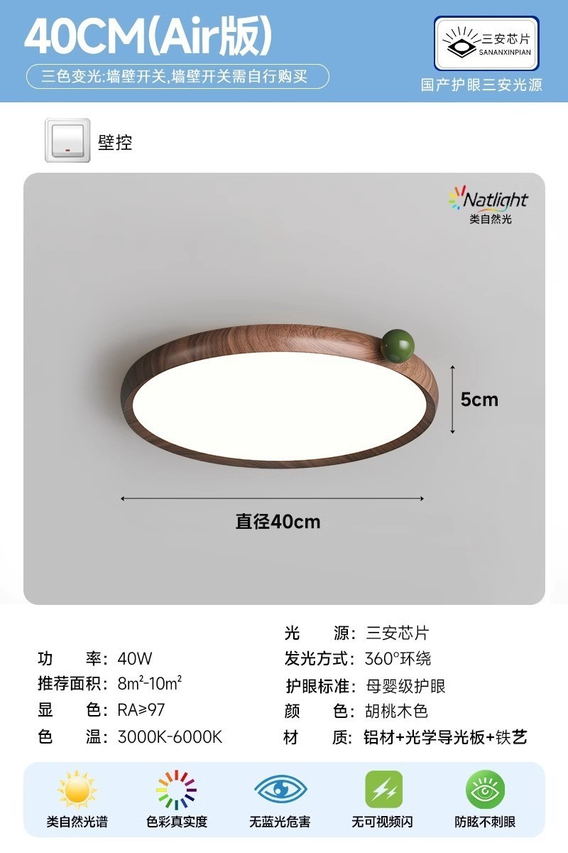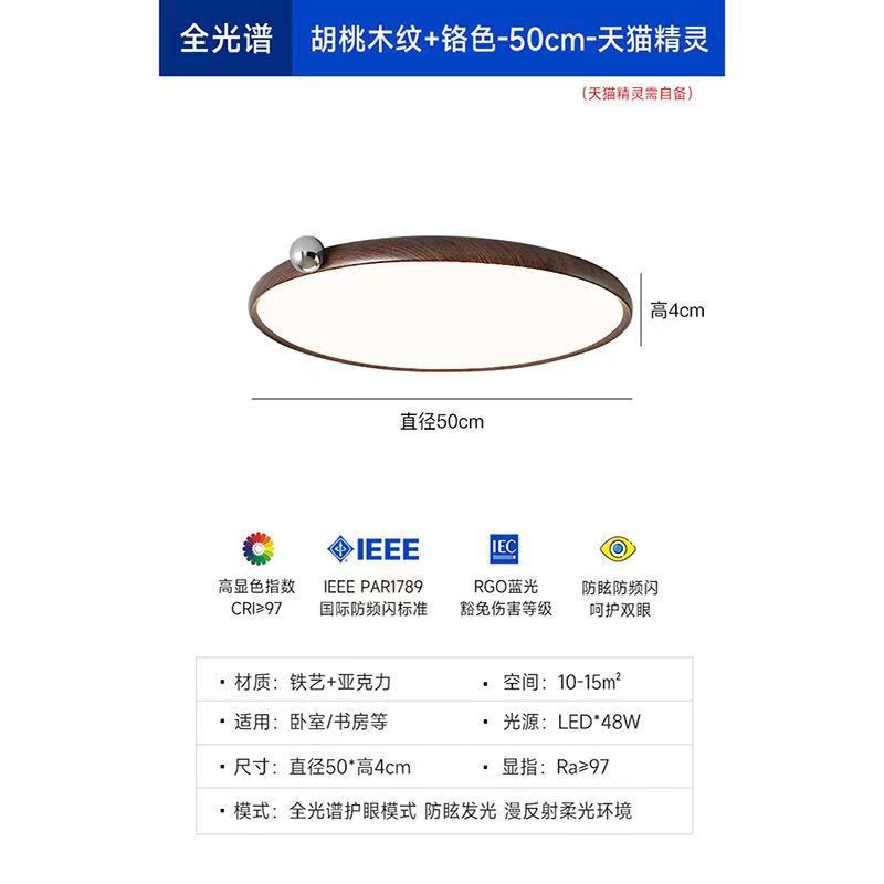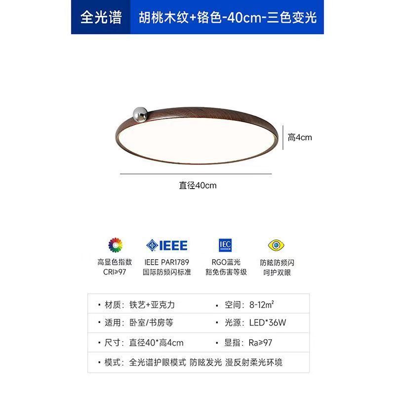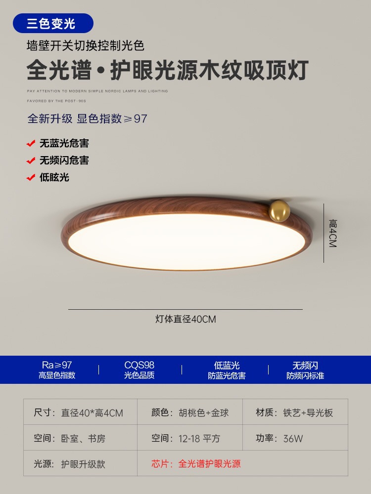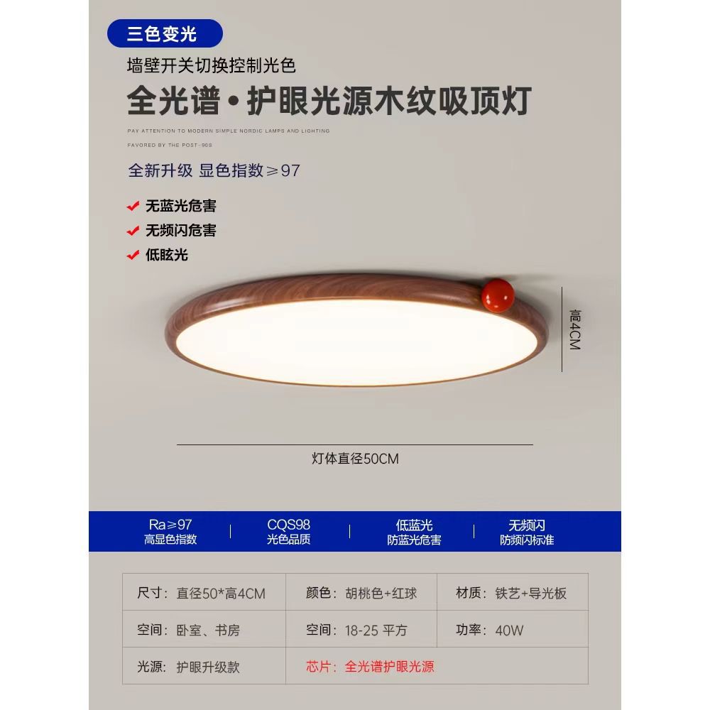 全光谱卧室吸顶灯胡桃木色超薄复古奶油风护眼中古风主卧房间灯
