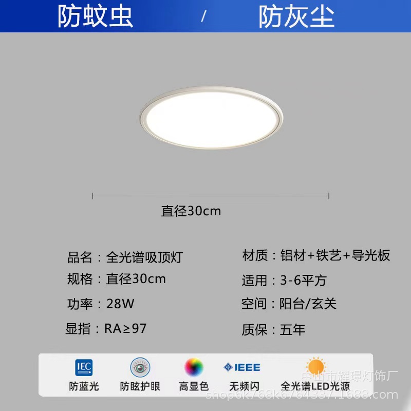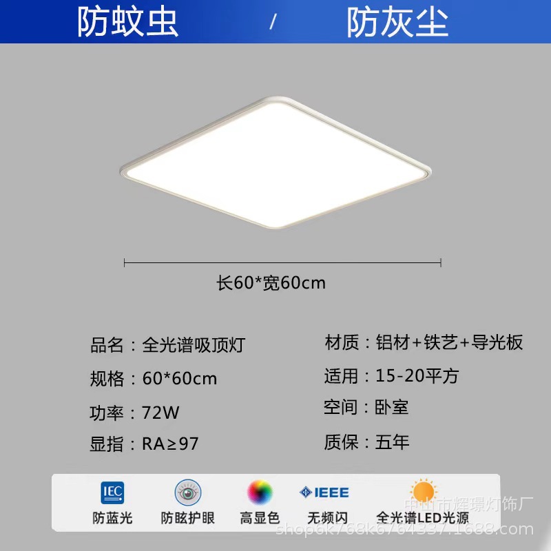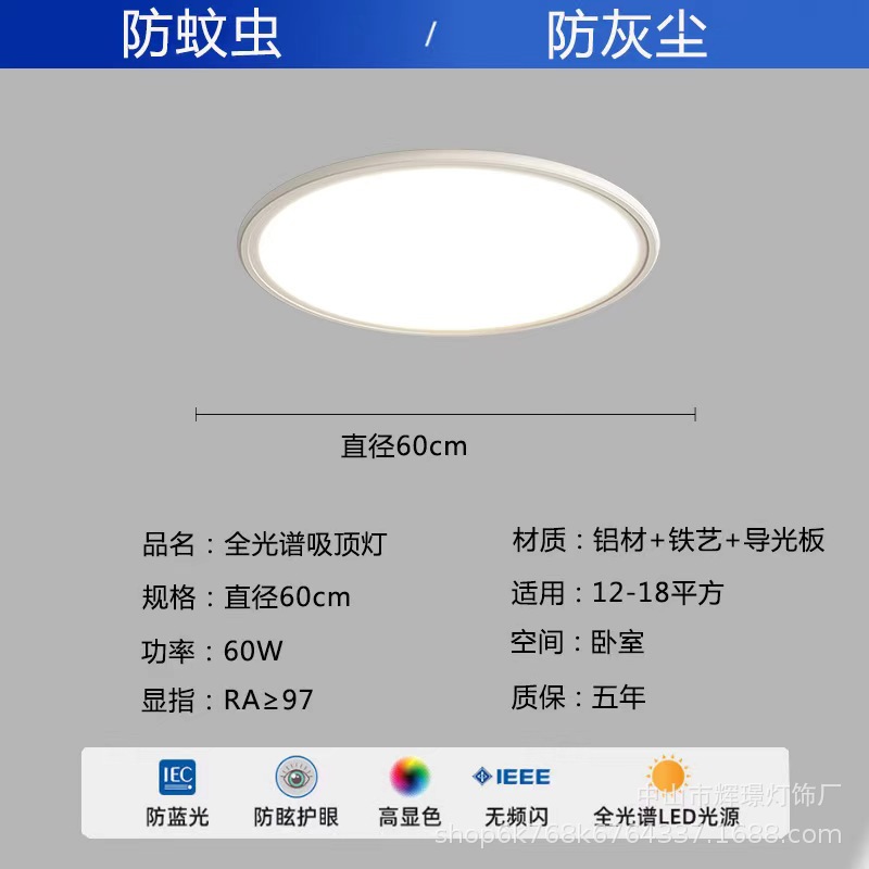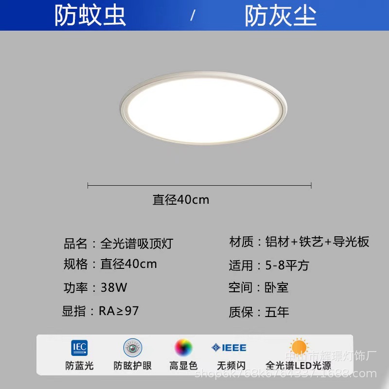 全光谱护眼吸顶灯高亮简约客厅卧室灯中山灯具全套led超薄吸顶灯