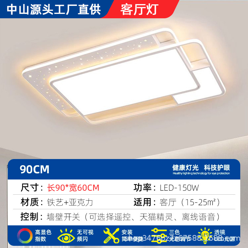 新款智能语音客厅灯吸顶灯现代简约大气LED全屋套装组合中山灯具