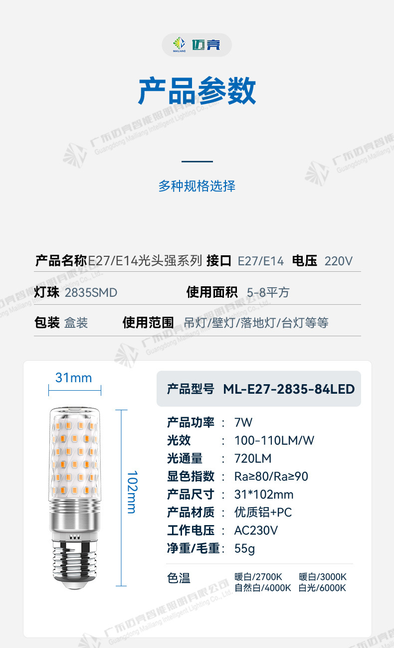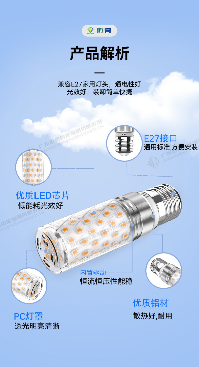E27螺口灯泡光头强全光谱玉米灯家用螺口e27节能魔豆灯led跨境批