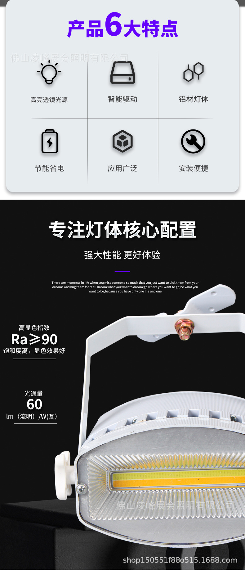 展览展示70W100W白光COB大白灯 展馆展厅白色LED扁头灯三色光射灯