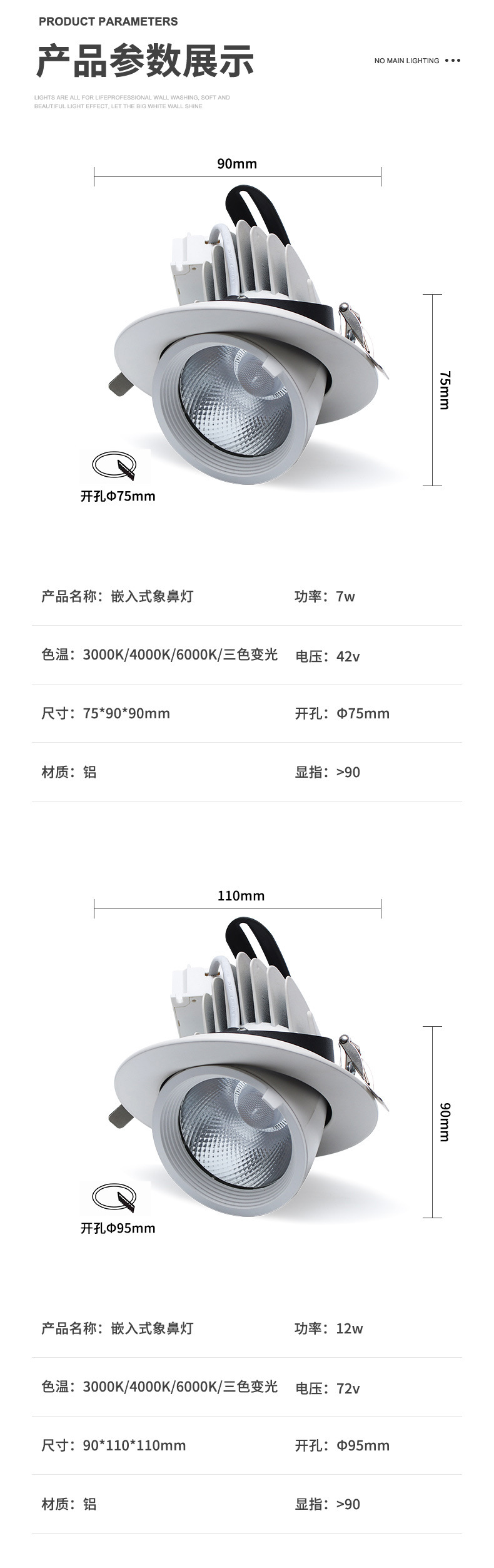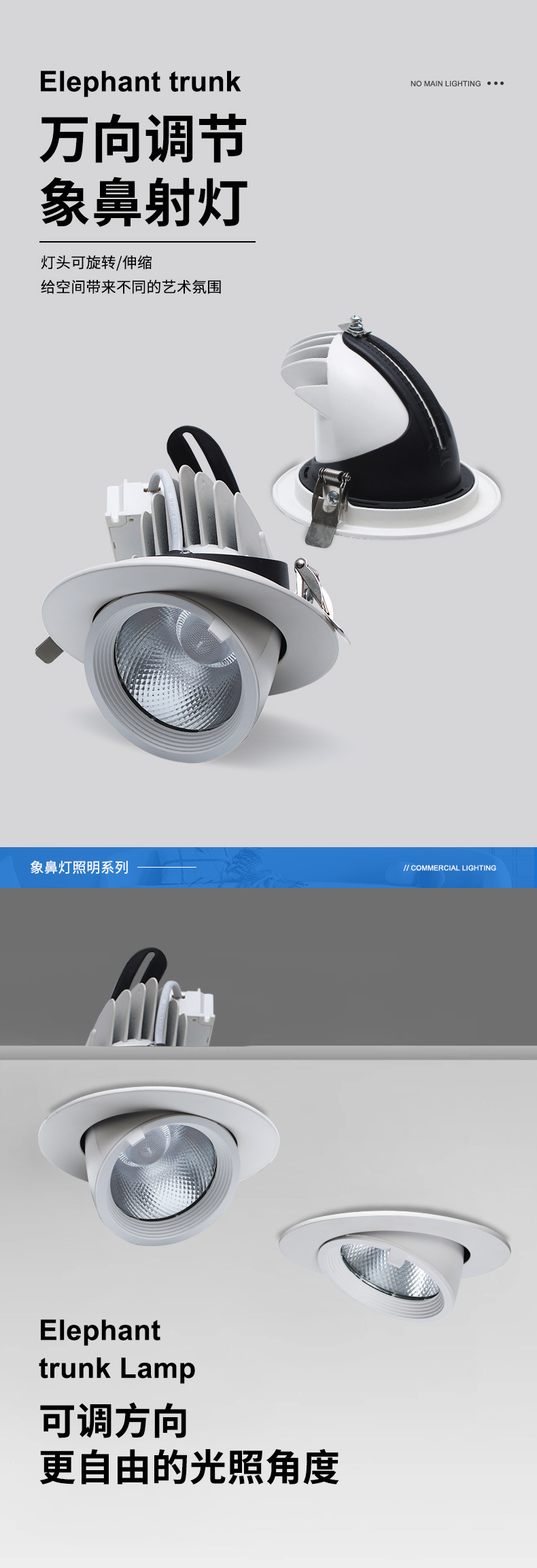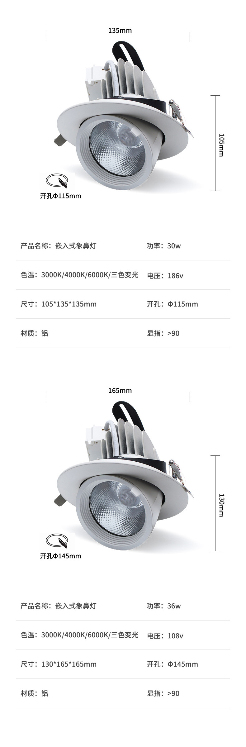 嵌入式象鼻射灯天花灯商用服装店led洗墙射灯天花可调节角度30w