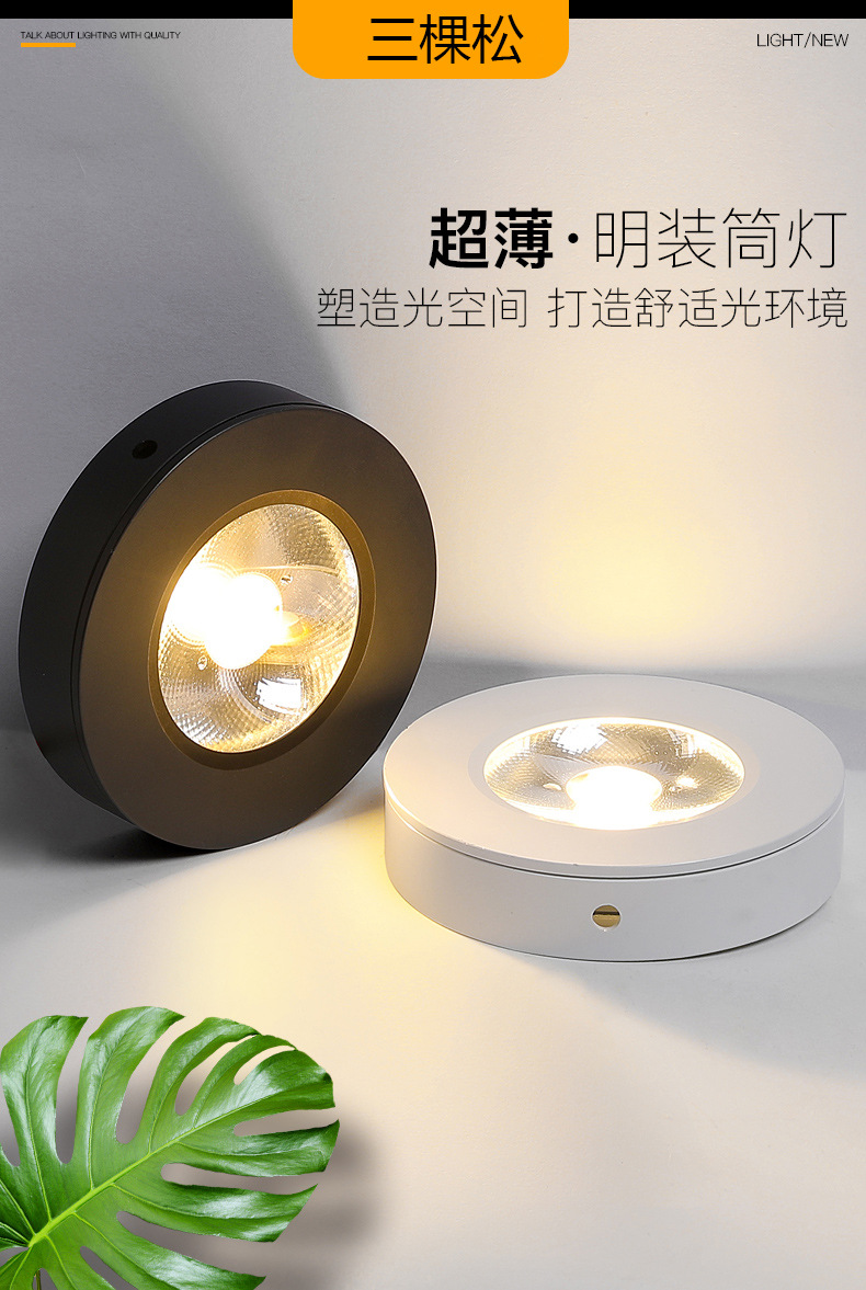 三棵松LED超薄明装免开孔小射灯吸顶酒柜衣柜迷你聚光天花柜台灯