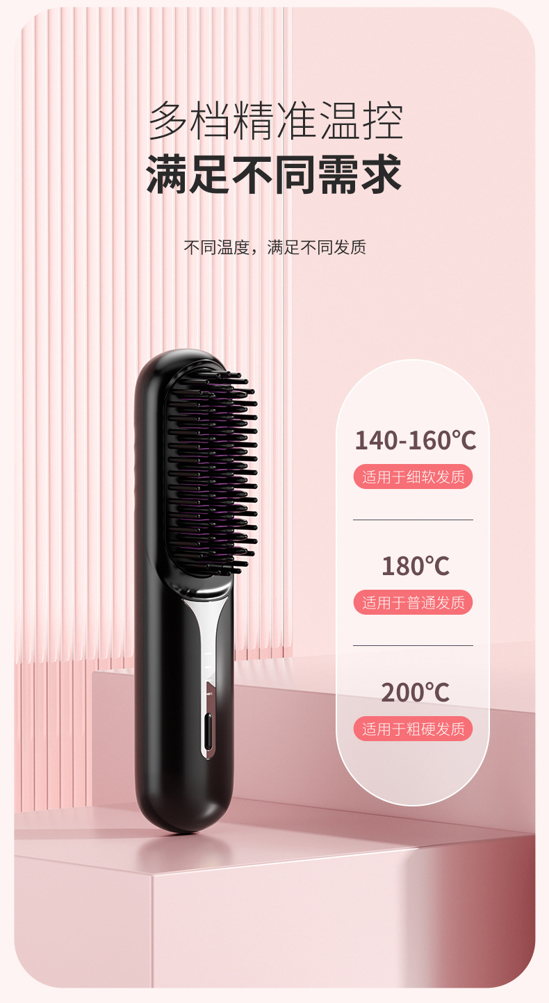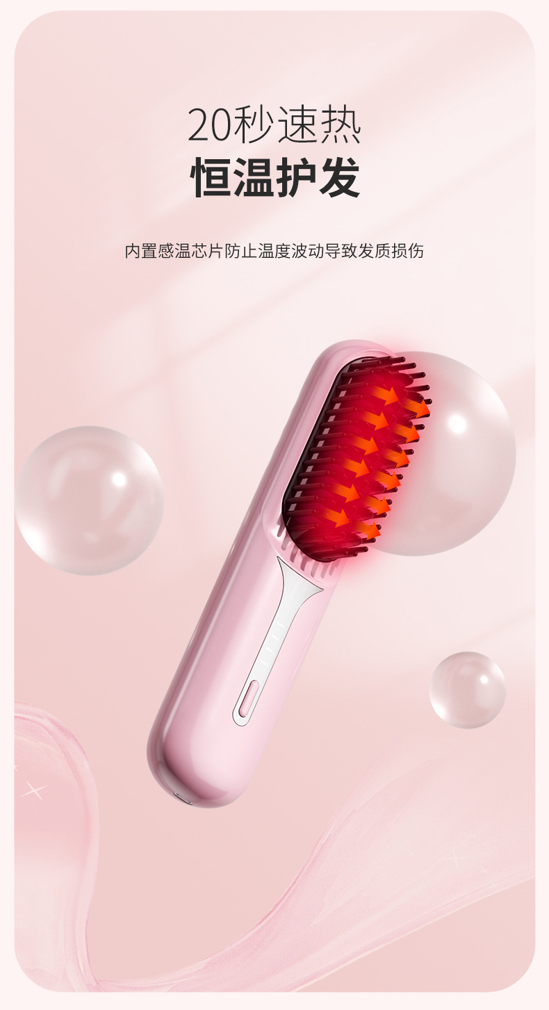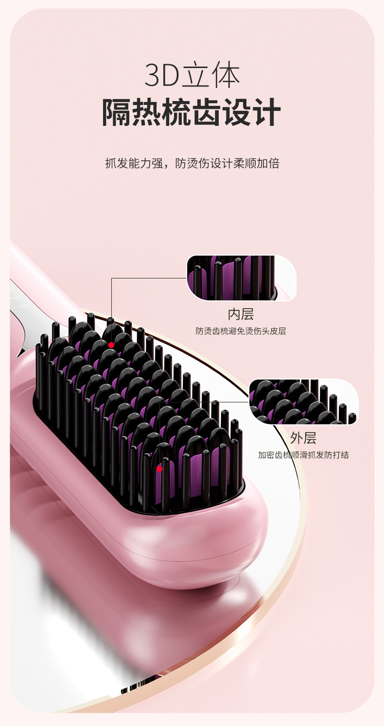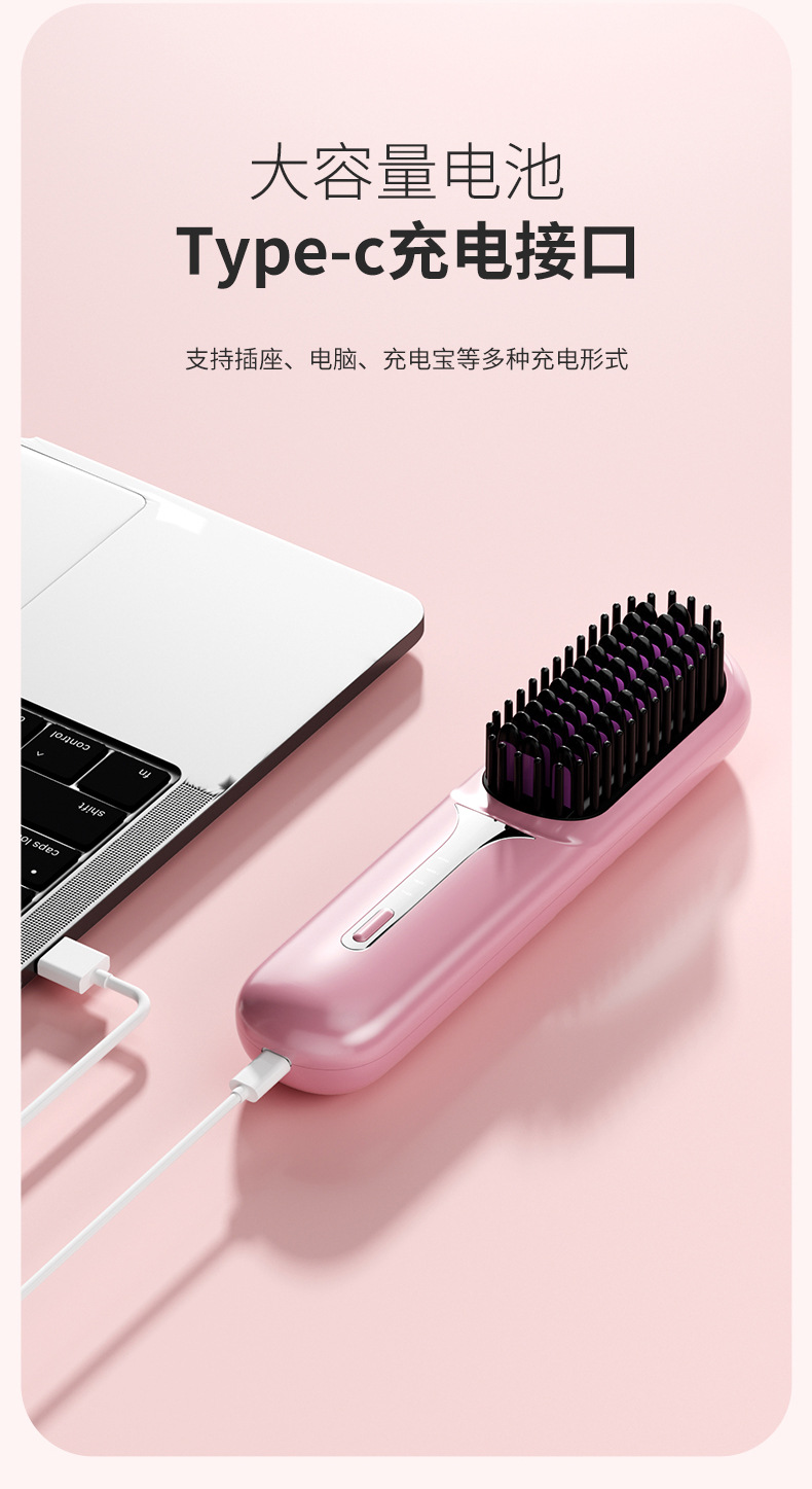 新品液晶USB充电陶瓷加热电梳子直发器 跨境亚马逊无线便携直发梳