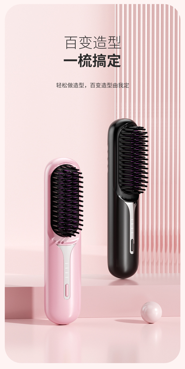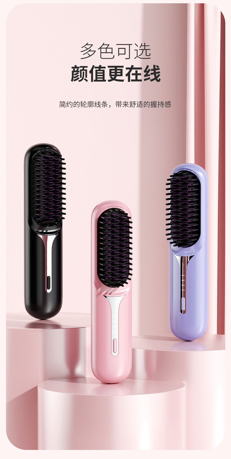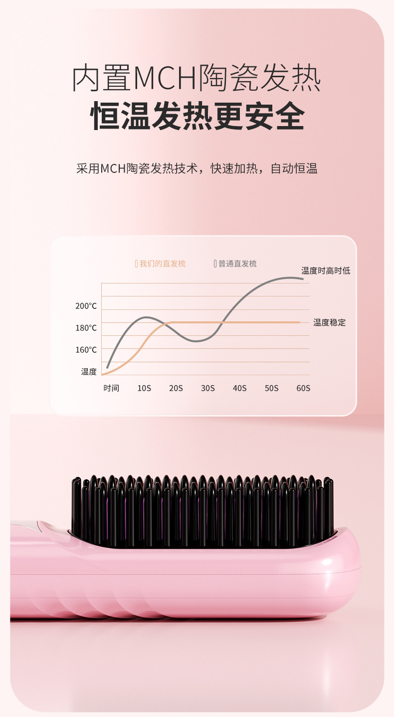 新品液晶USB充电陶瓷加热电梳子直发器 跨境亚马逊无线便携直发梳