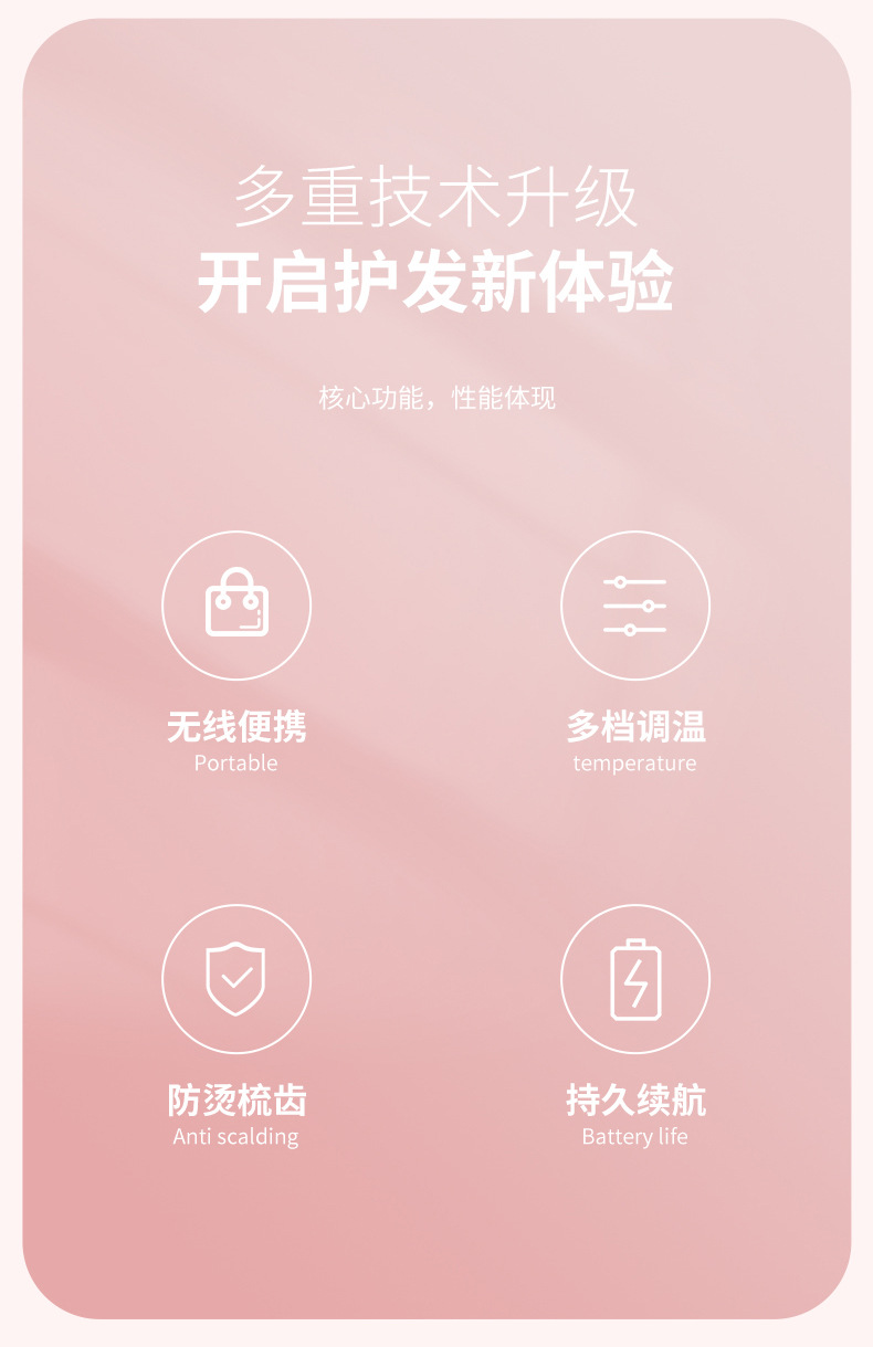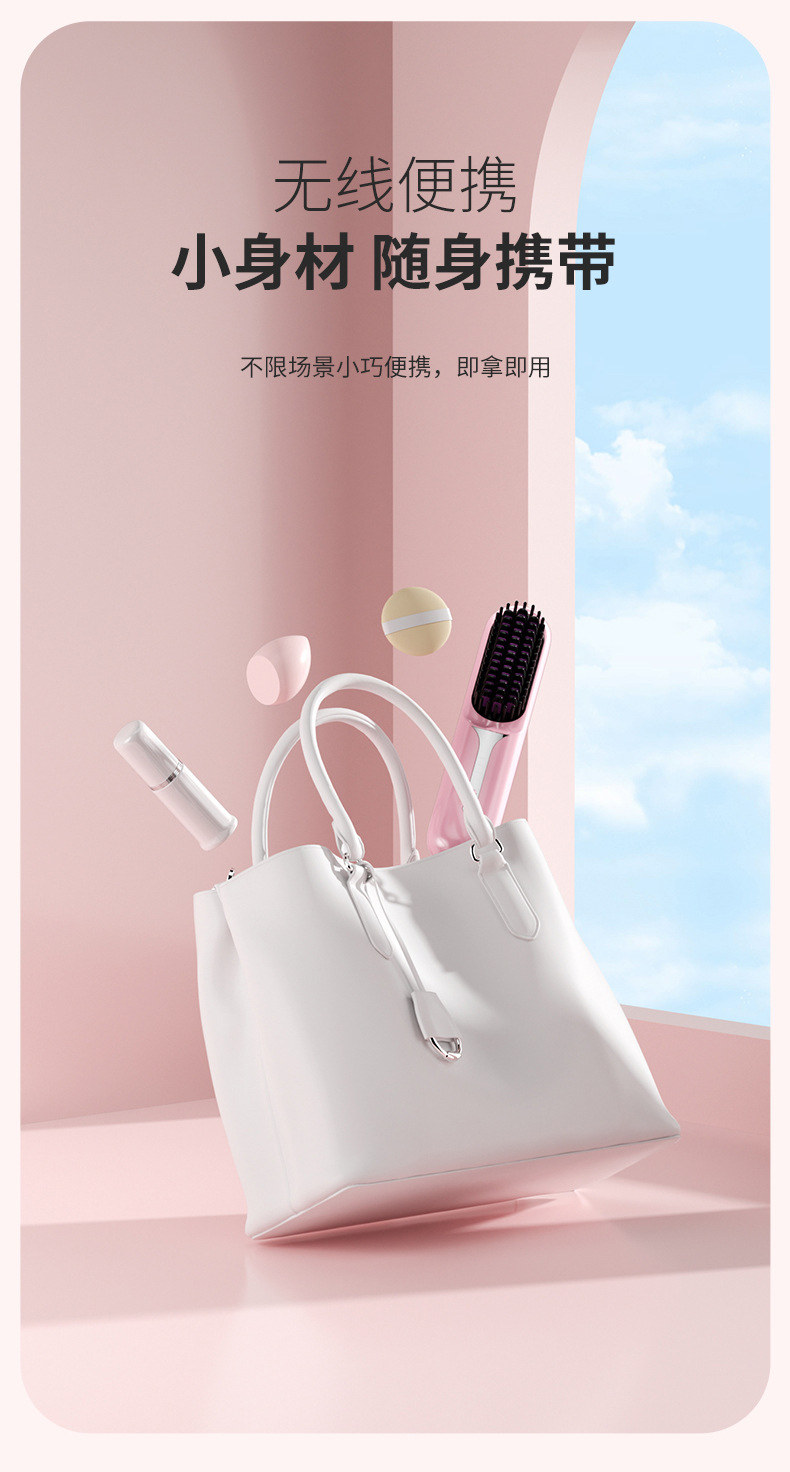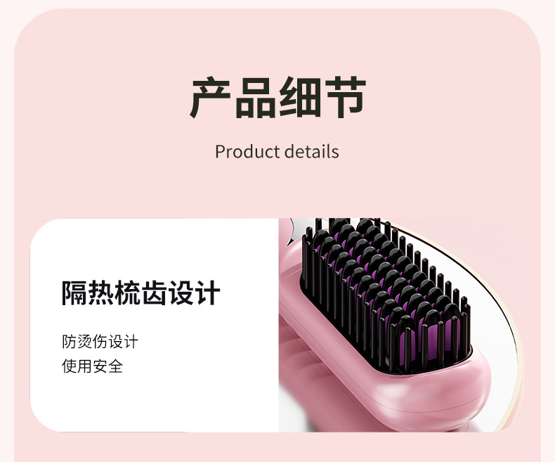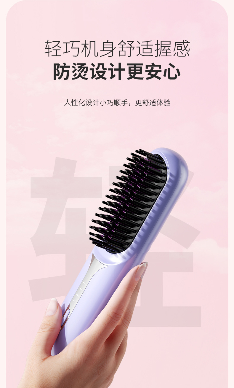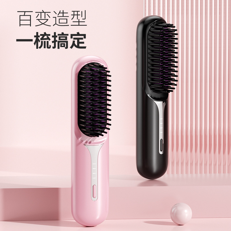 新品液晶USB充电陶瓷加热电梳子直发器 跨境亚马逊无线便携直发梳