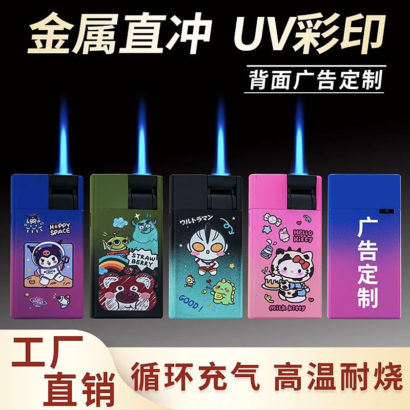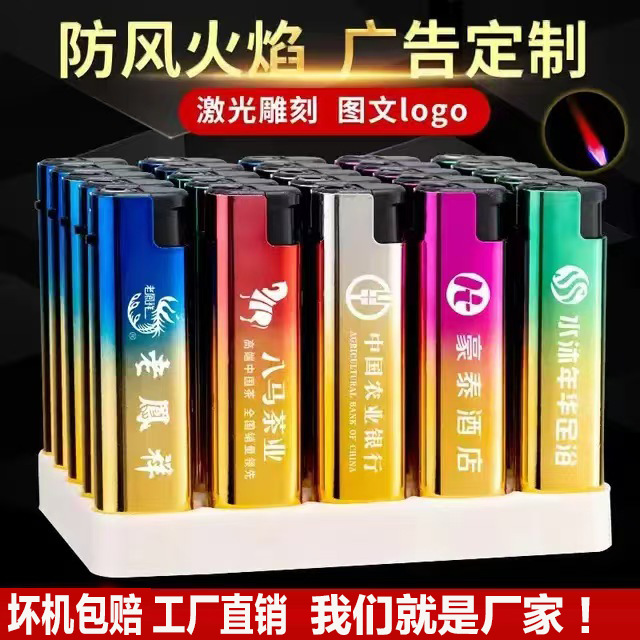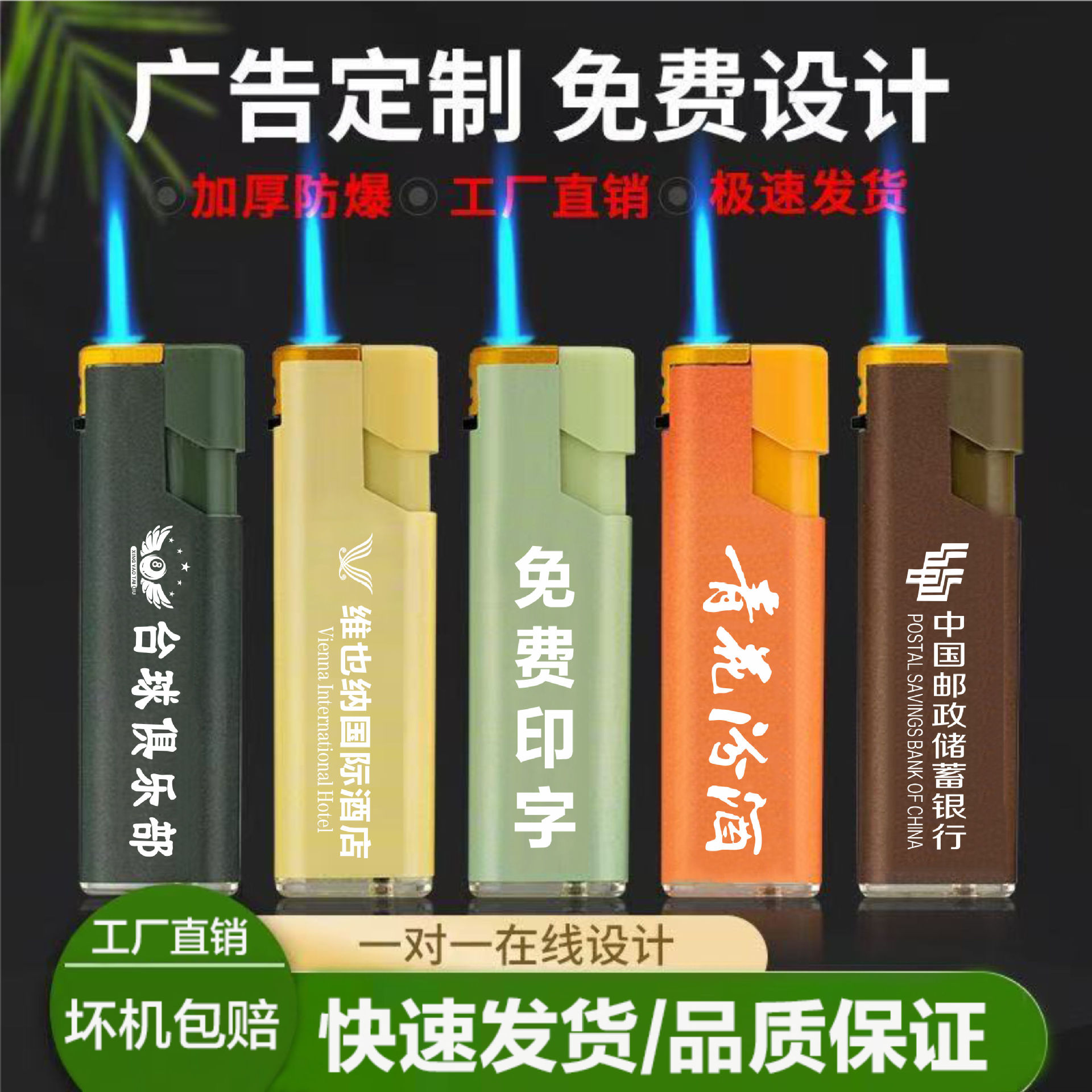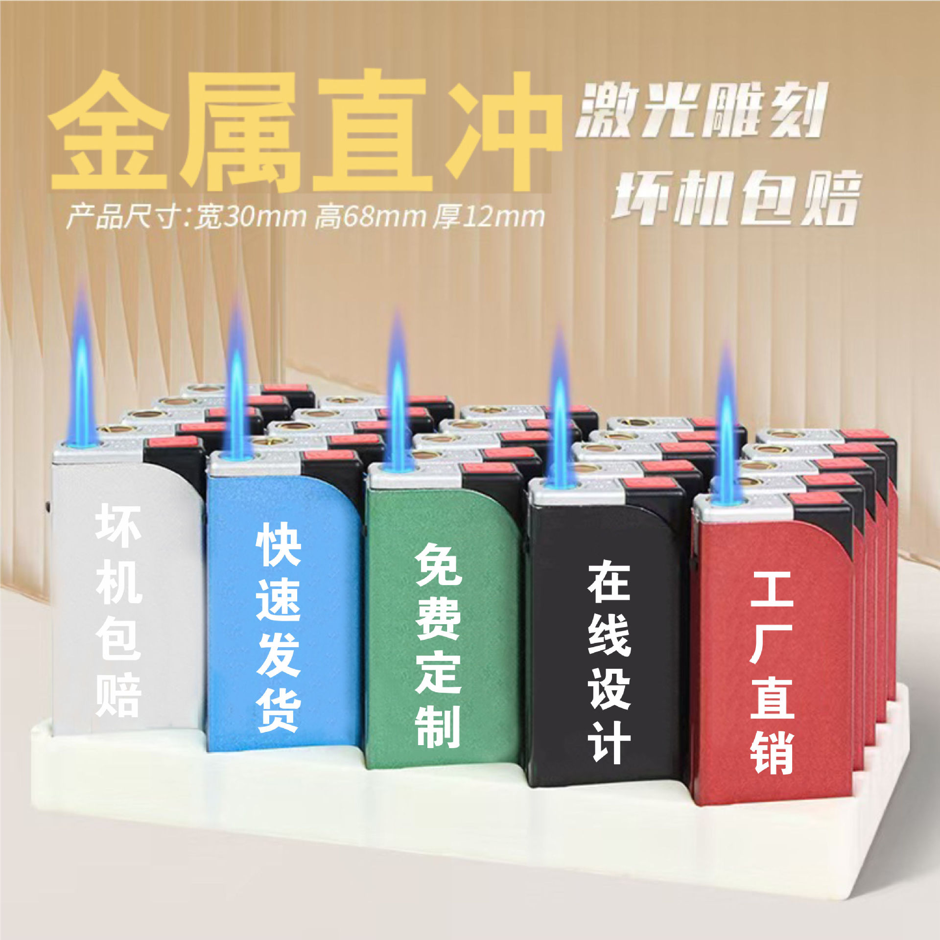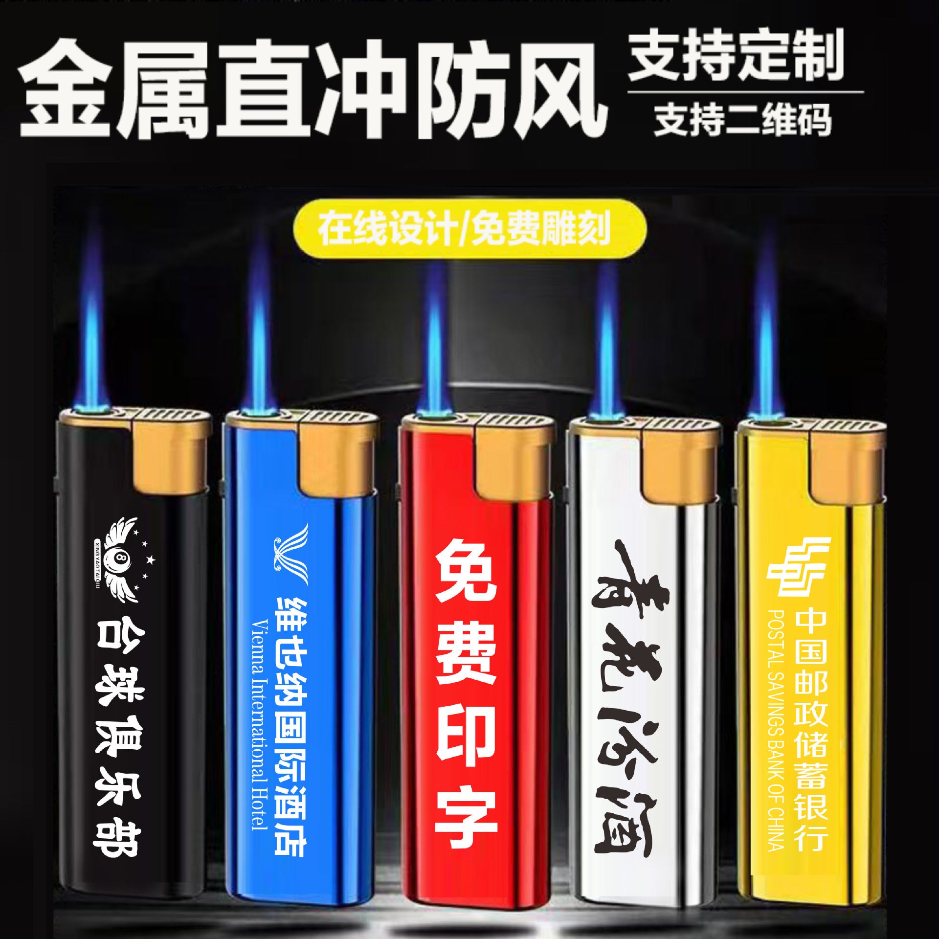 新款高颜值斜打直冲打火机防风高级感抖音广告火机批发厂家印字