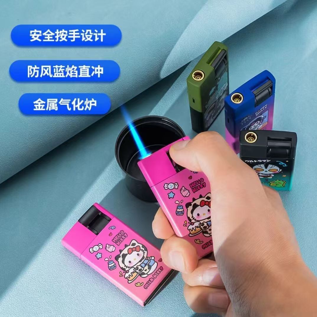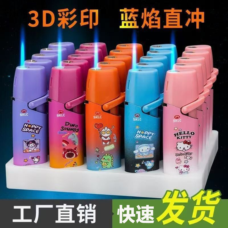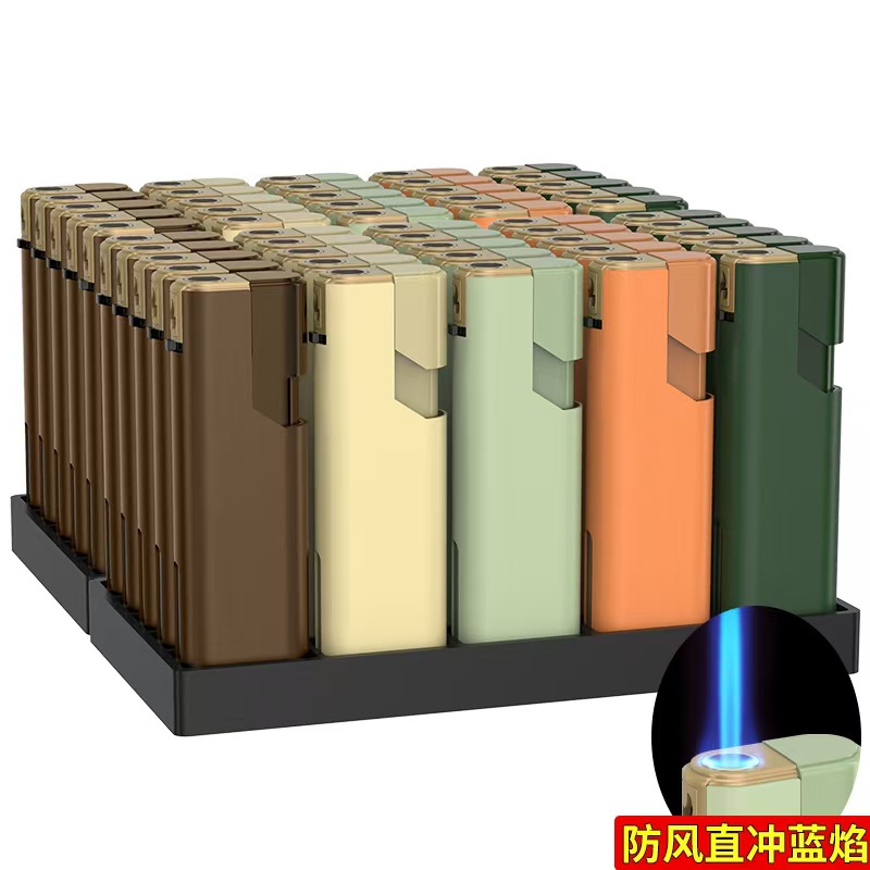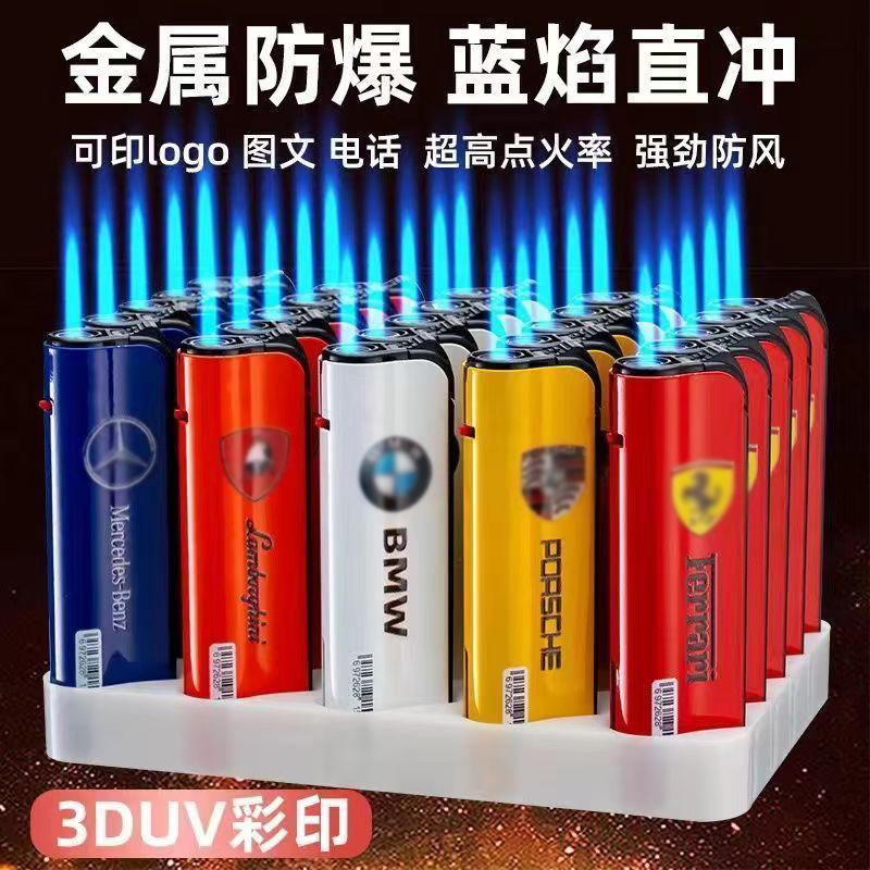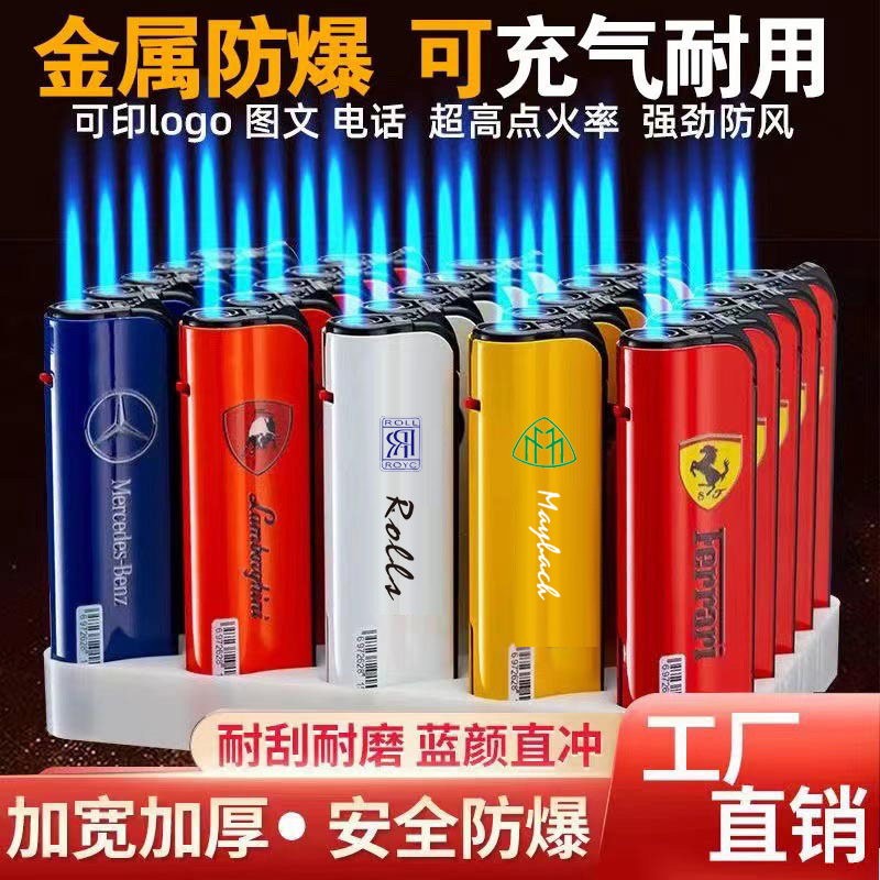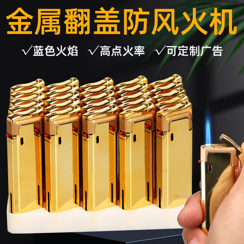 新款高颜值斜打直冲打火机防风高级感抖音广告火机批发厂家印字