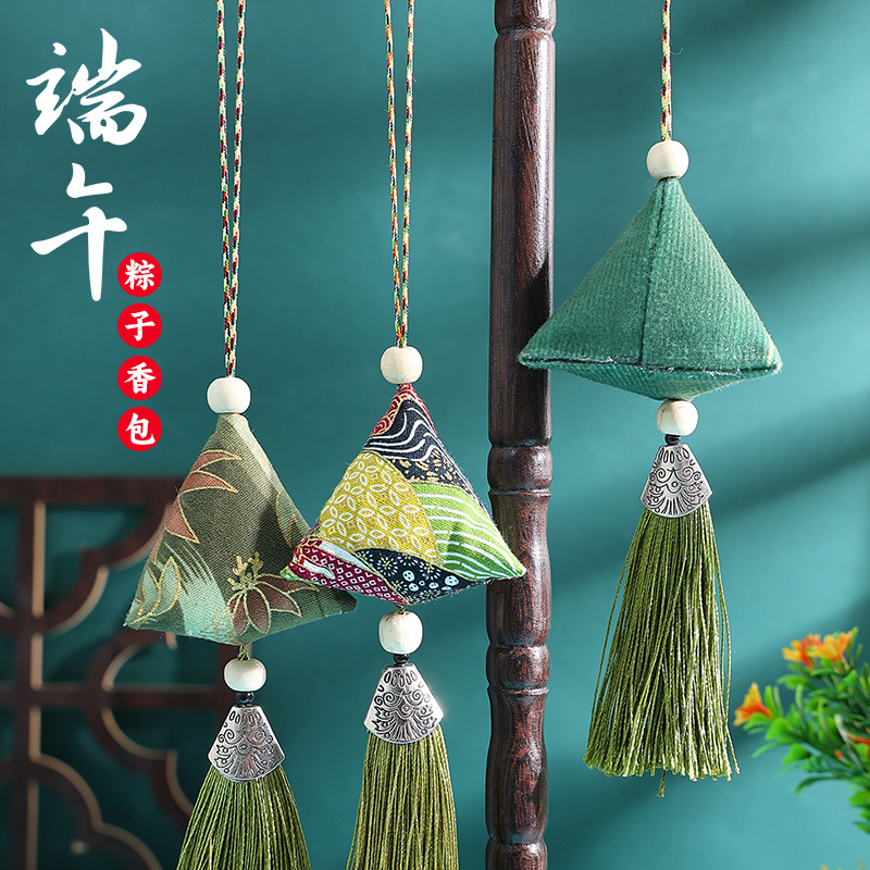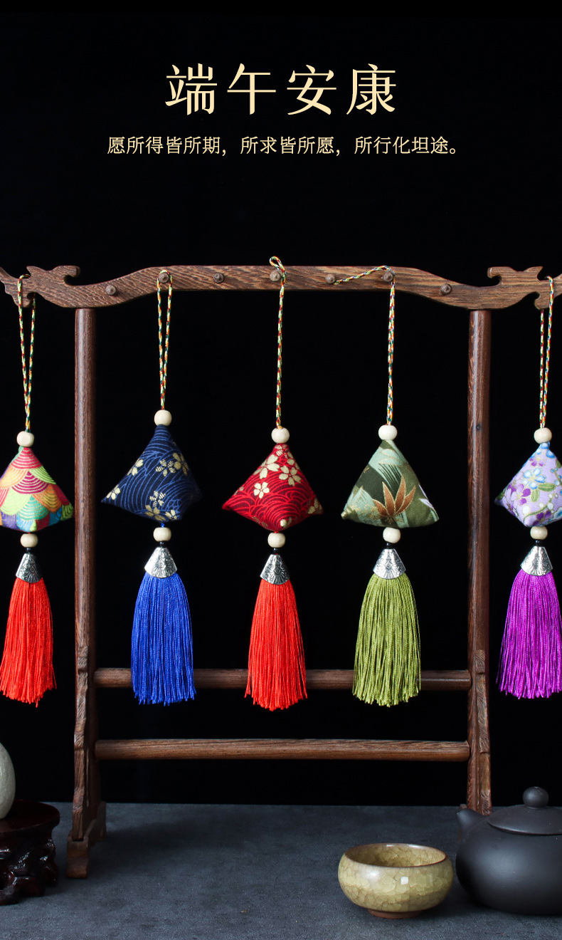 端午节粽子香囊艾草三角粽子平安祈福随身挂件流苏香包厂家批发
