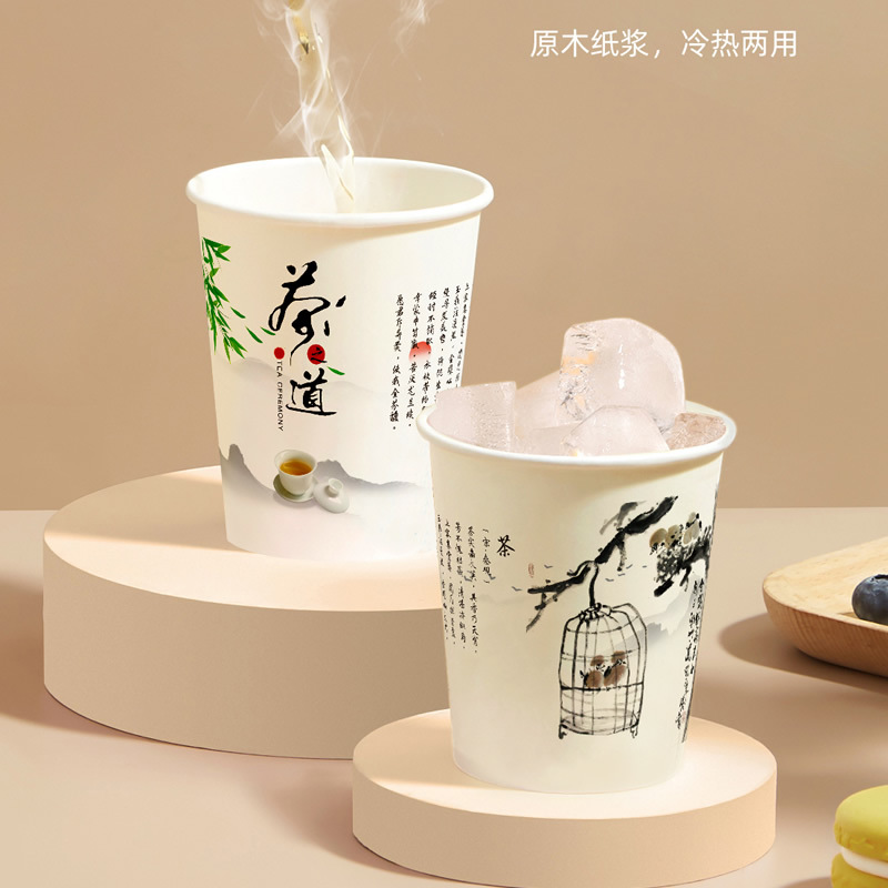 一次性杯子纸杯加厚耐用家用商用办公杯咖啡杯茶道一件代发