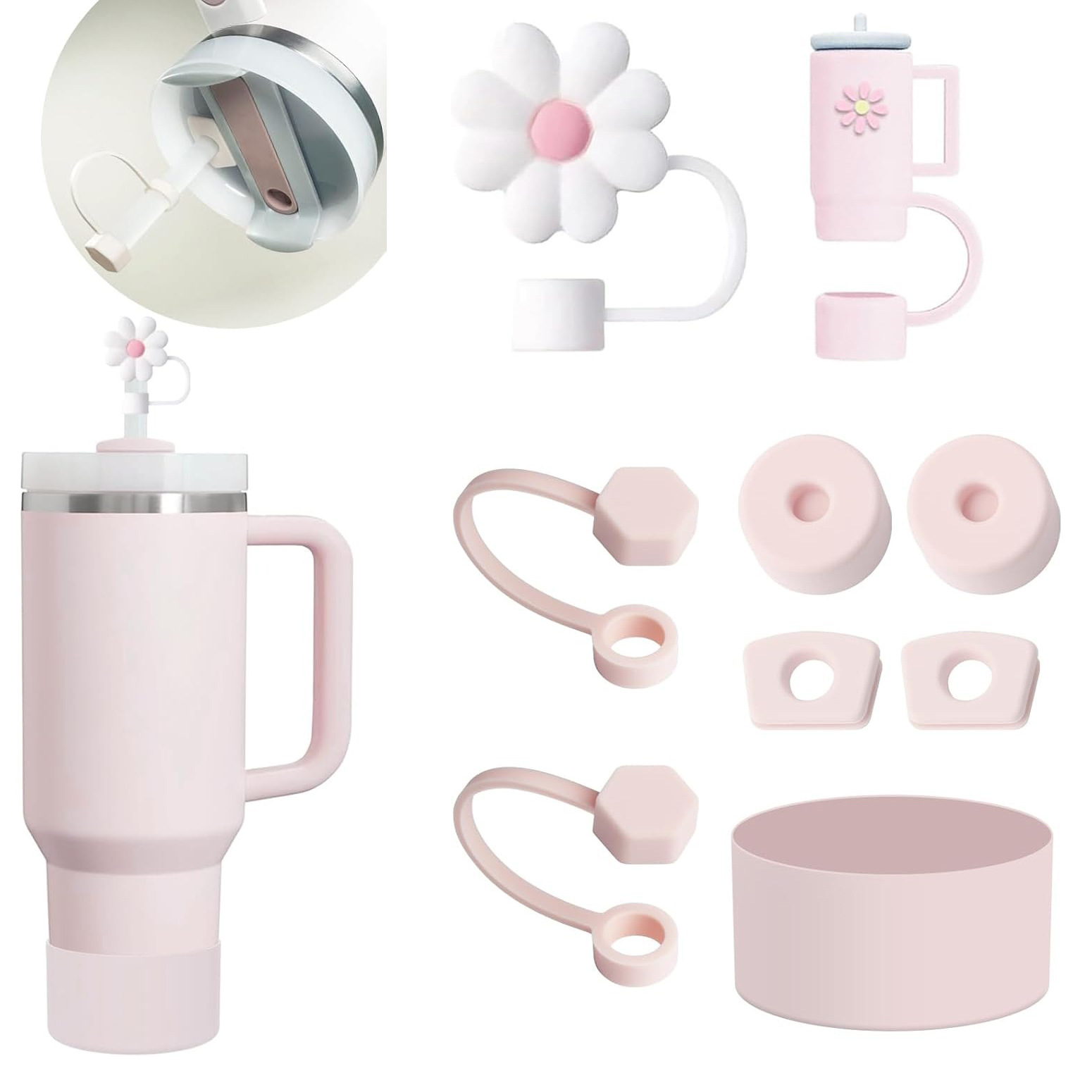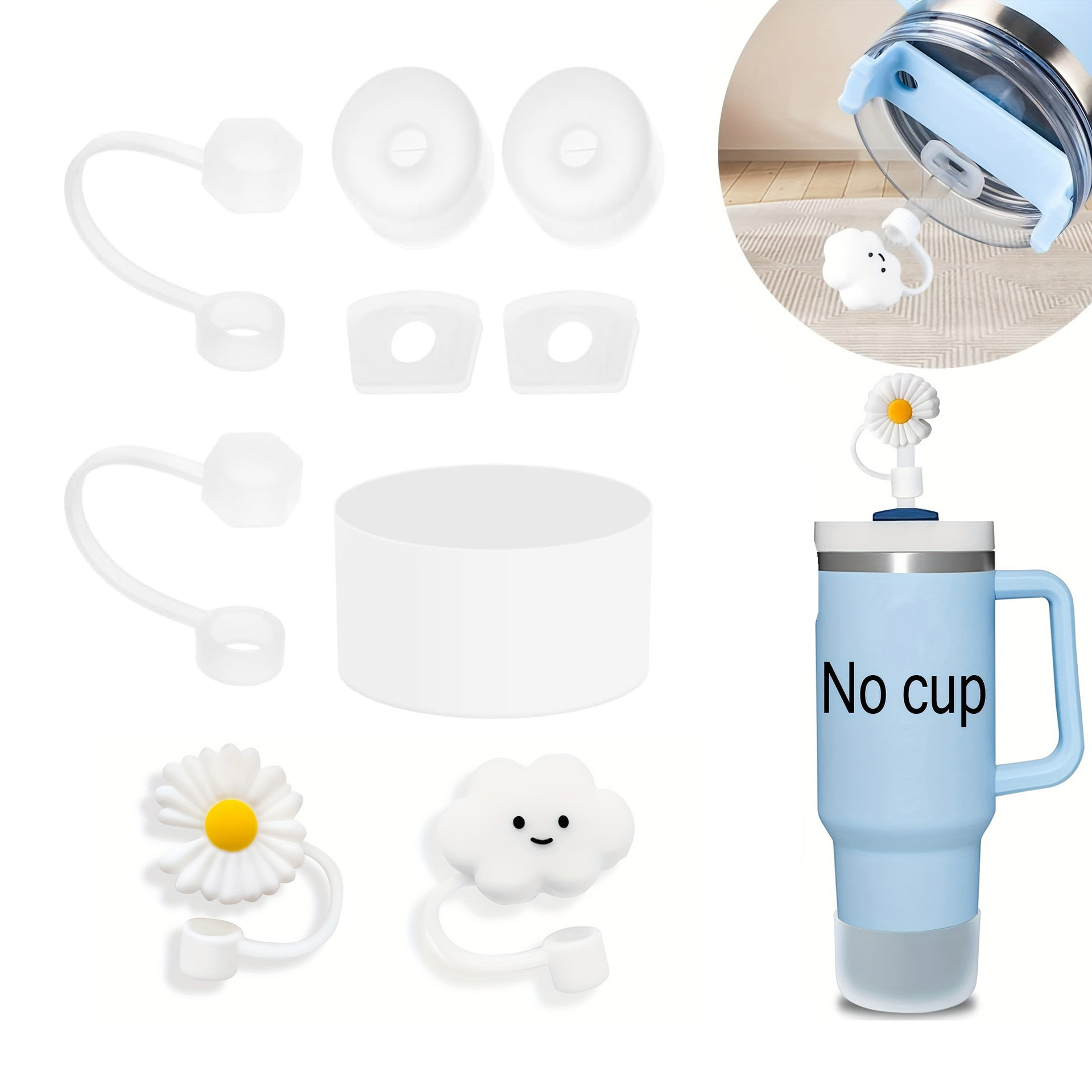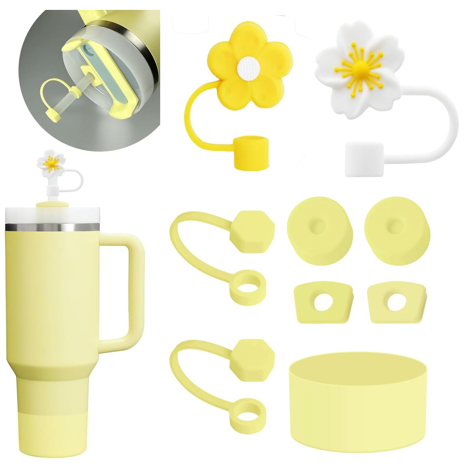 跨境史丹利吸管保温杯配件套装(2个10mm口径吸管帽、2套防漏塞、1个杯套)