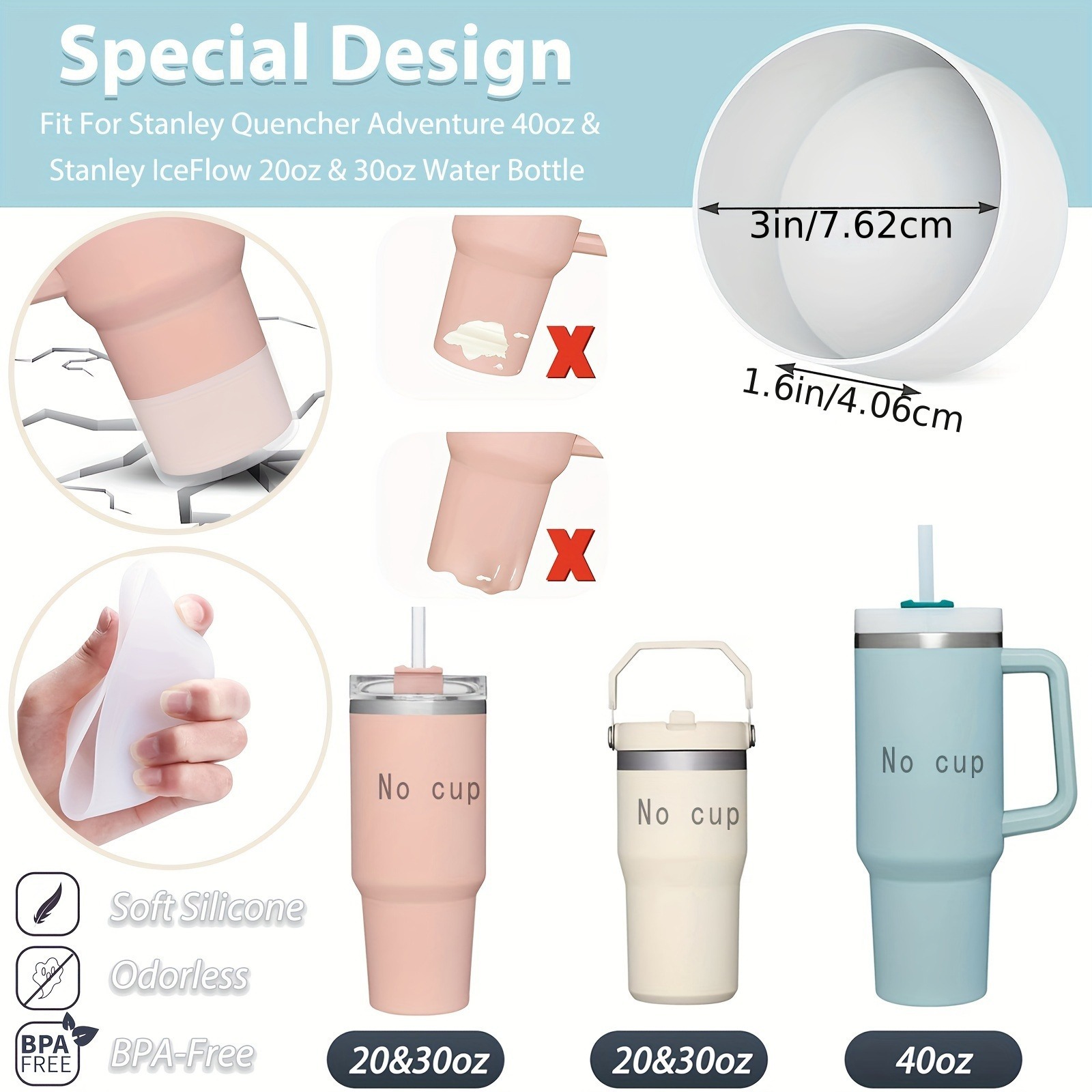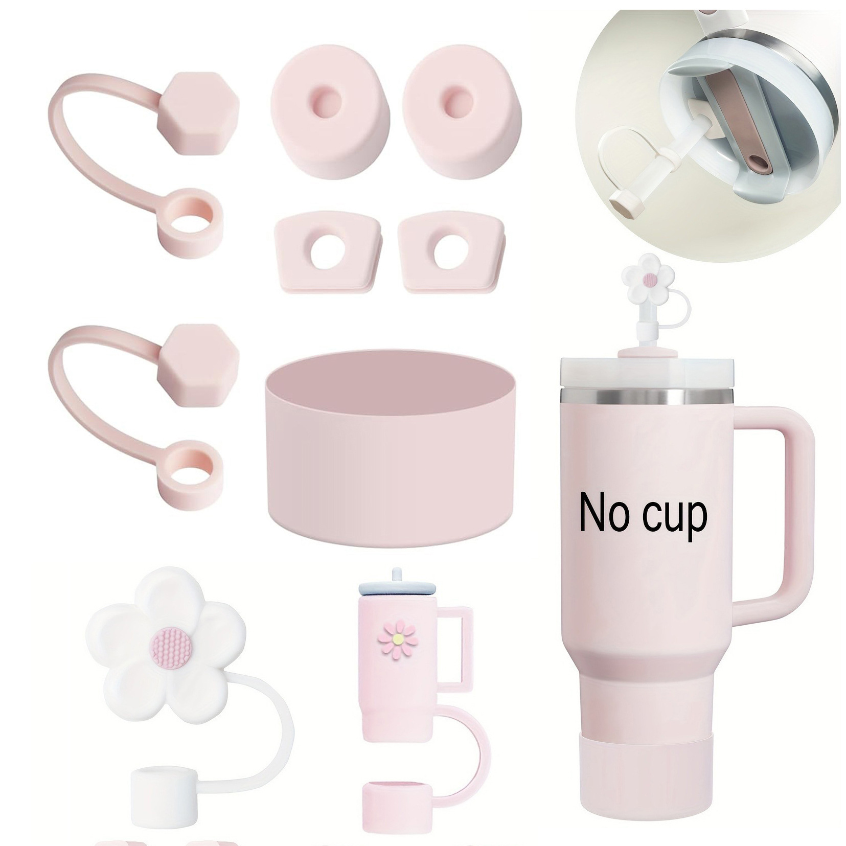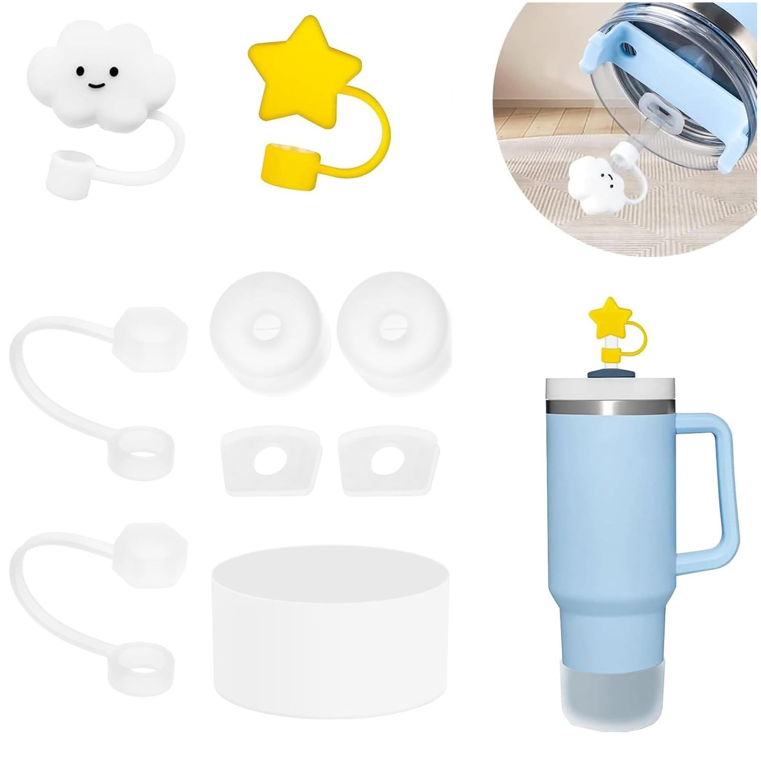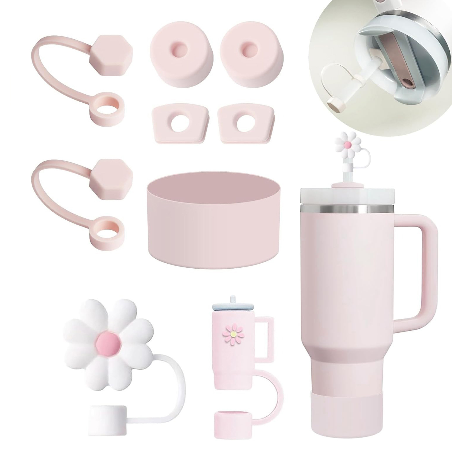 跨境史丹利吸管保温杯配件套装(2个10mm口径吸管帽、2套防漏塞、1个杯套)