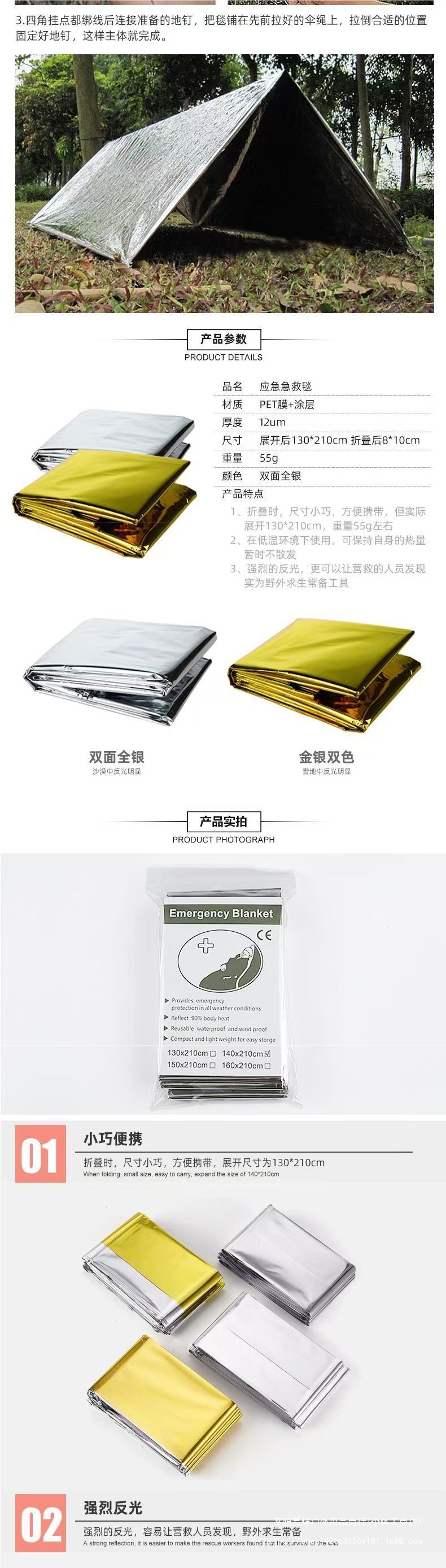 | 加厚急救保温毯【130*210厘米】3件装 | USD $2.36 | 2000 piece available |