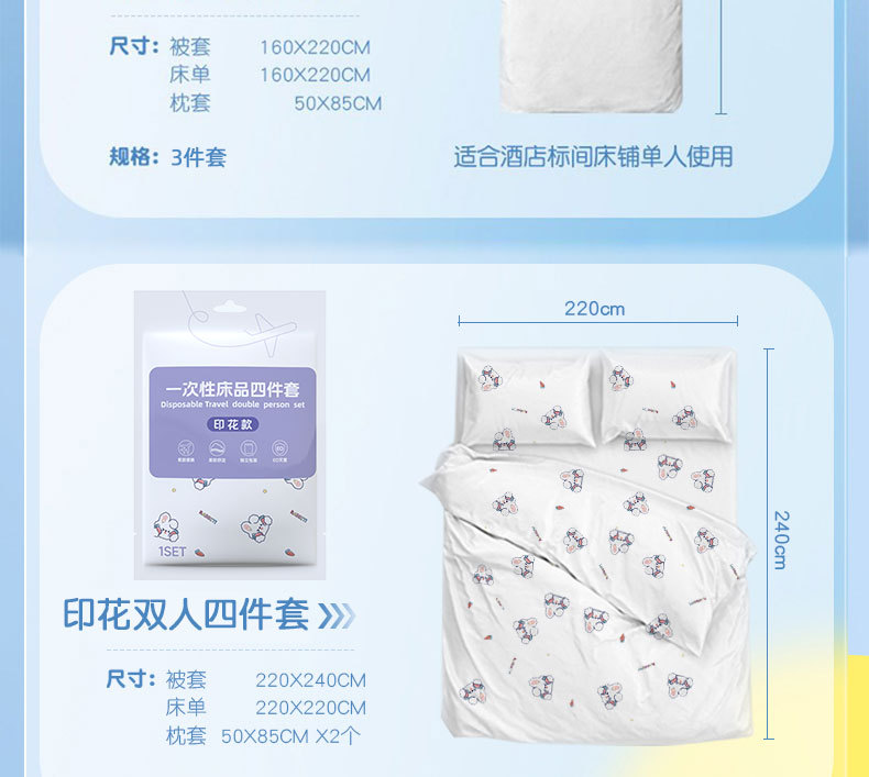 一次性床单四件套被罩枕套被套旅行双人四件套美容院床上用品便携