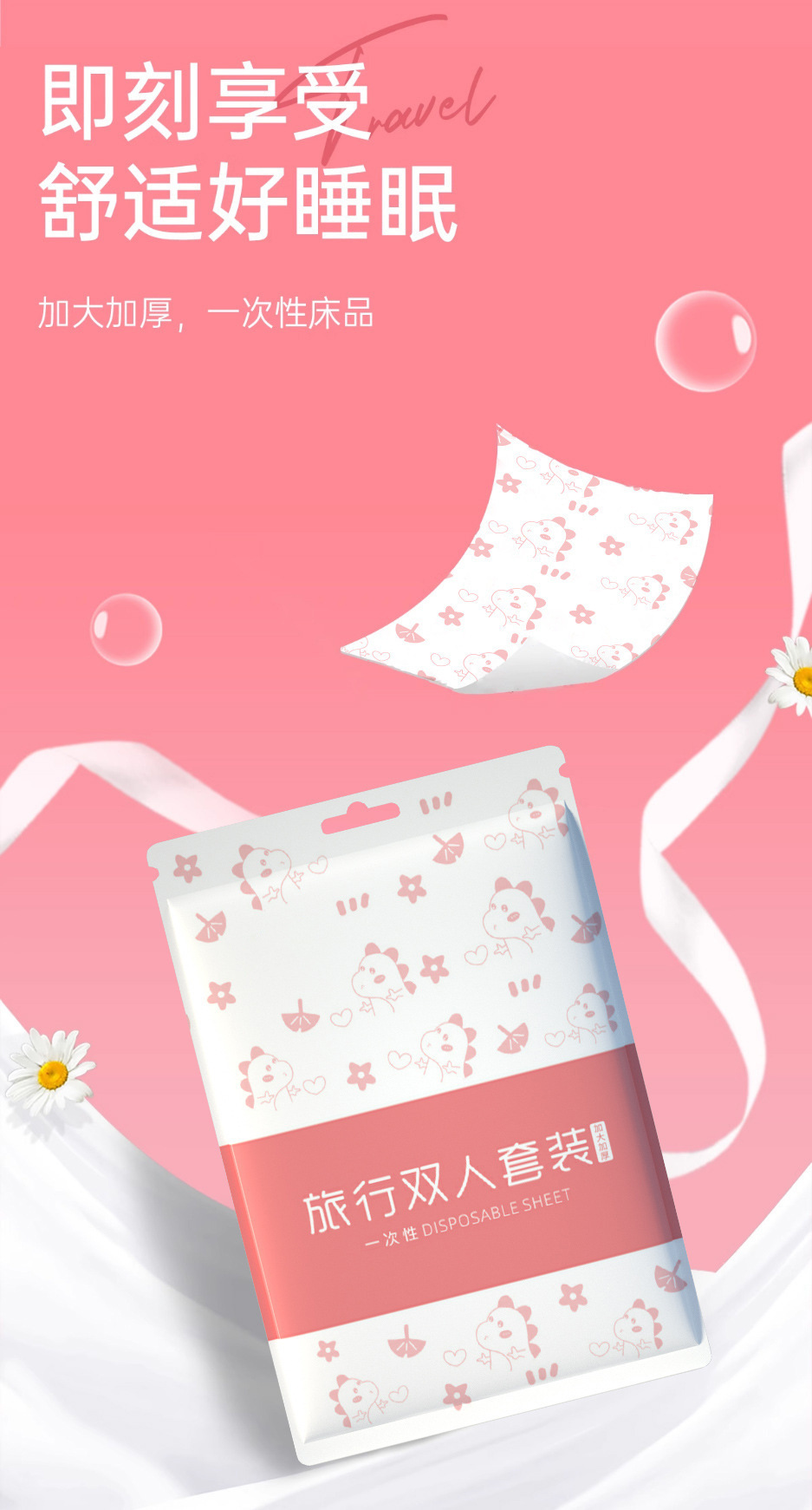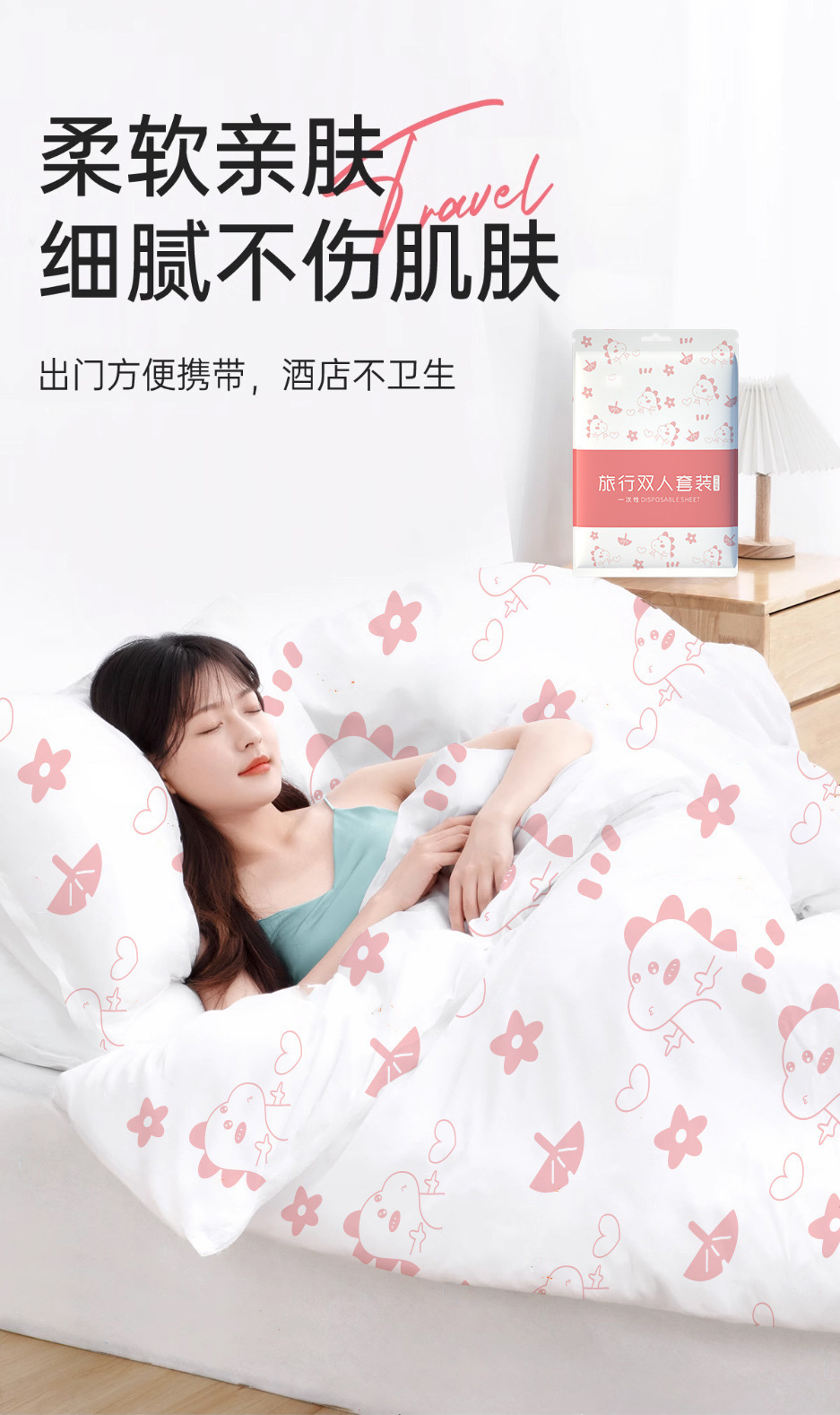 一次性床单被罩枕套酒店印花四件套旅行床上隔脏用品旅游便携卫生