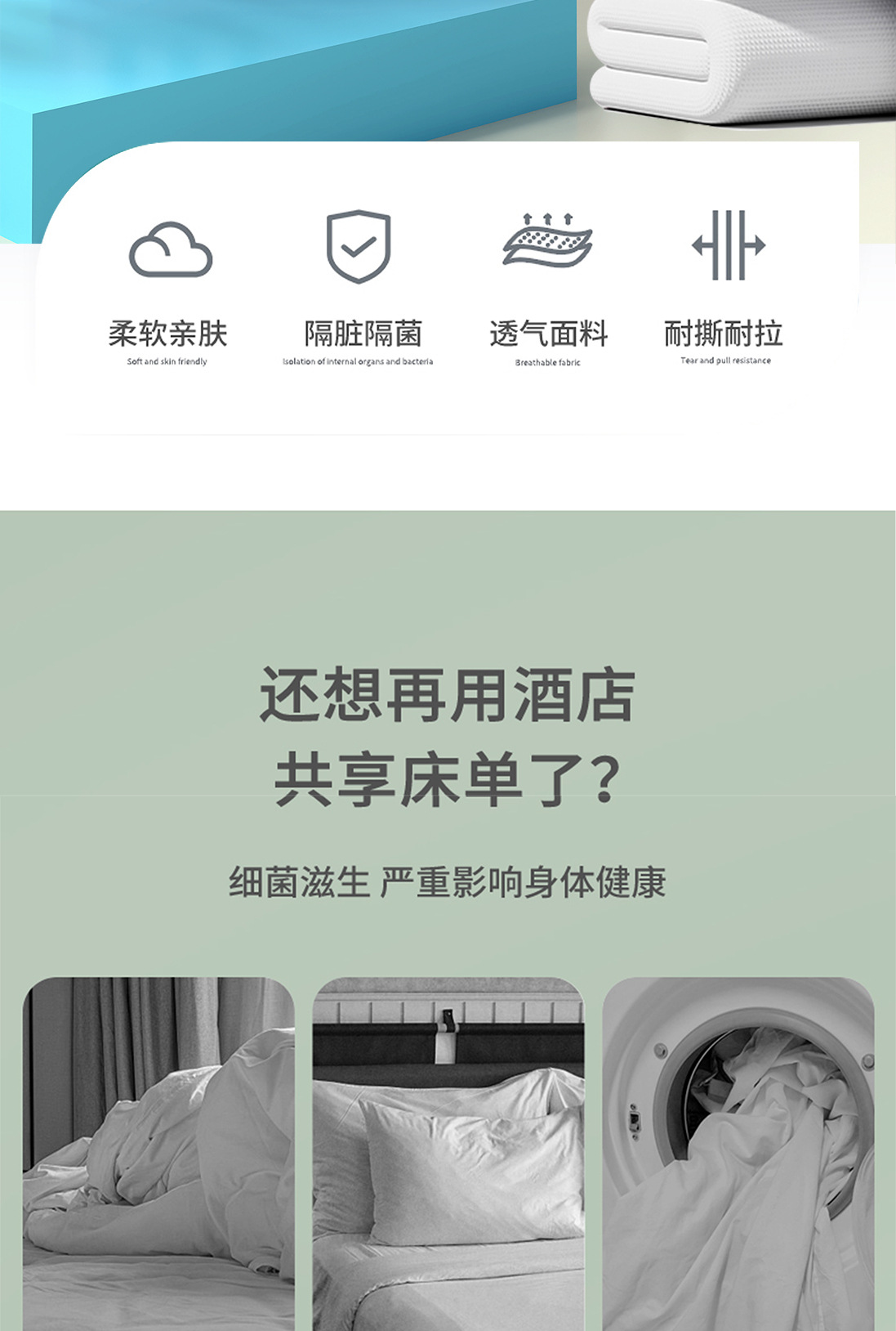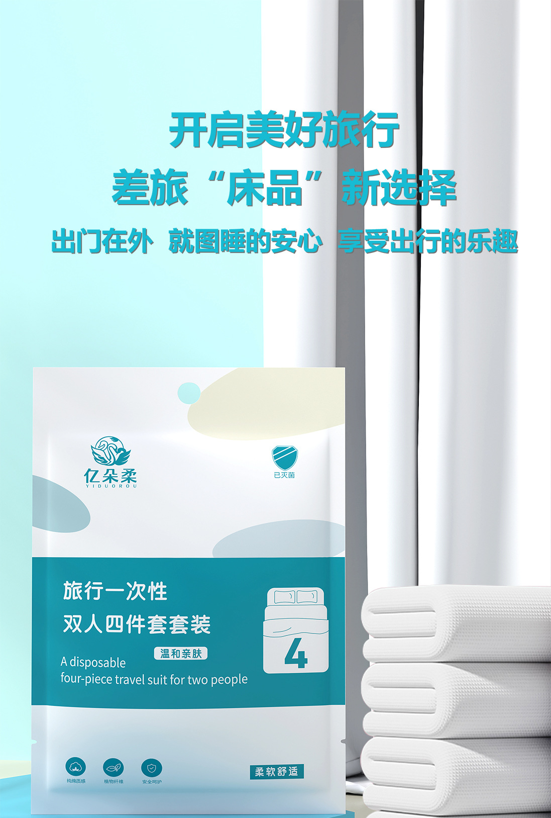 一次性床单被罩枕套被套纯棉四件套旅行酒店全棉床上隔脏用品便携