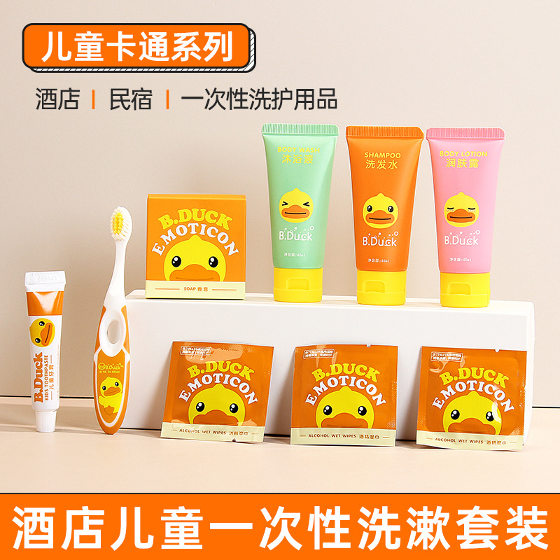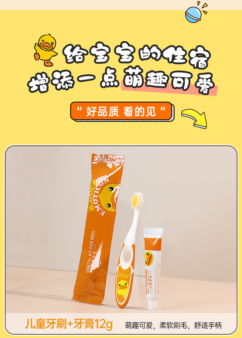 酒店专用儿童一次性洗漱用品套装民宿软毛牙刷带牙膏小黄鸭旅行装