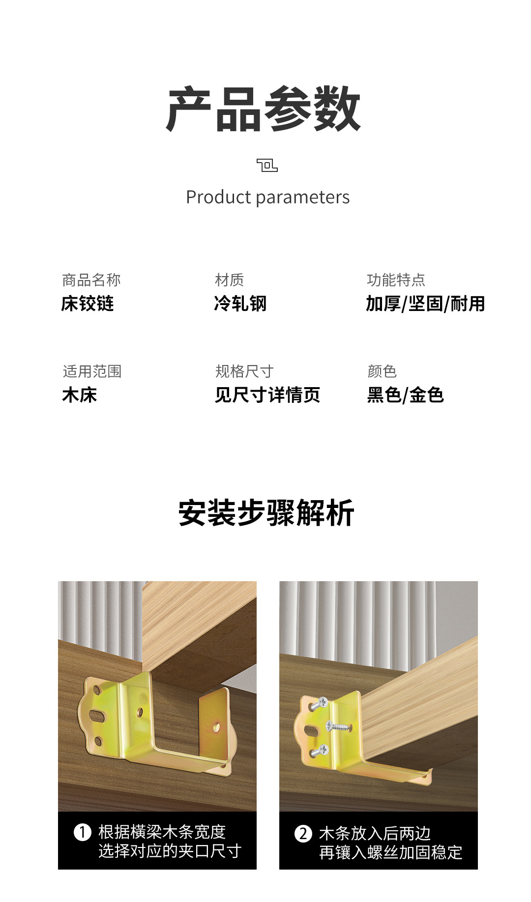加厚U型床铰链床连接件固定件挂扣件加固神器实木床五金配件大全