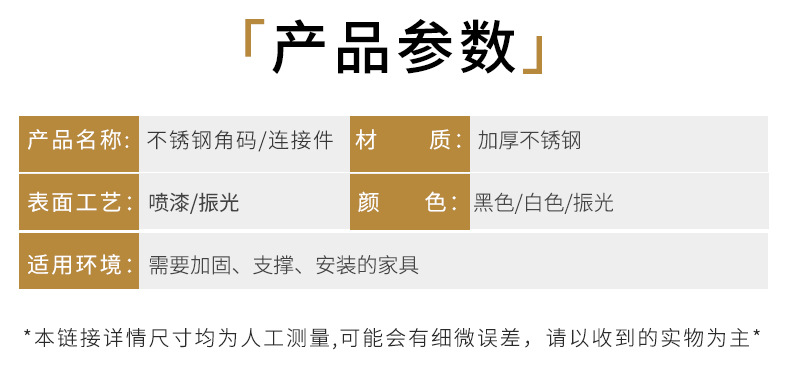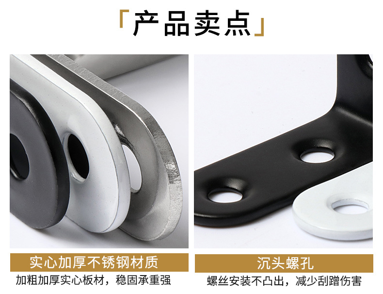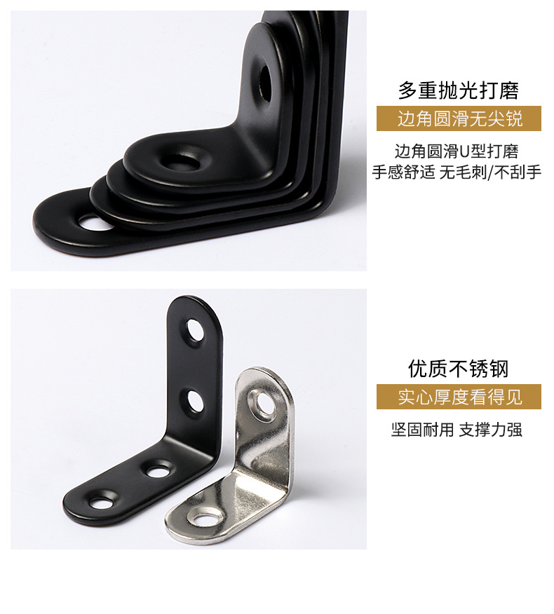 不锈钢黑色角码 90度L型支架直角层板托 白色托架桌椅支撑连接件