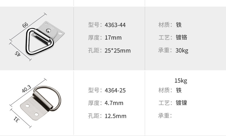 NRH/纳汇D环扣工具箱半圆环拉扣五金配件D字型绑扎环批发
