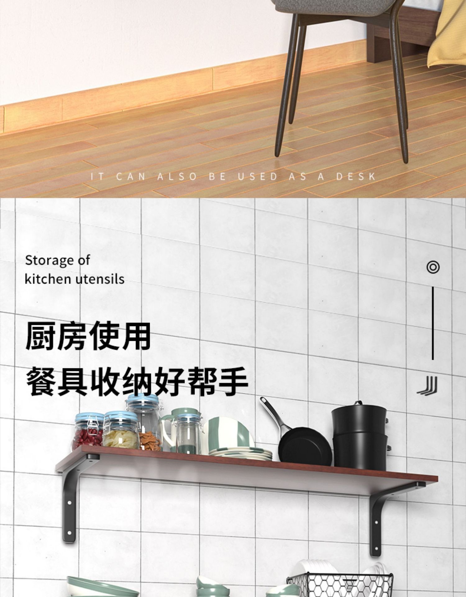 家装五金配件直角置物支架厨房墙上隔板弯形支架客厅层板承重托架