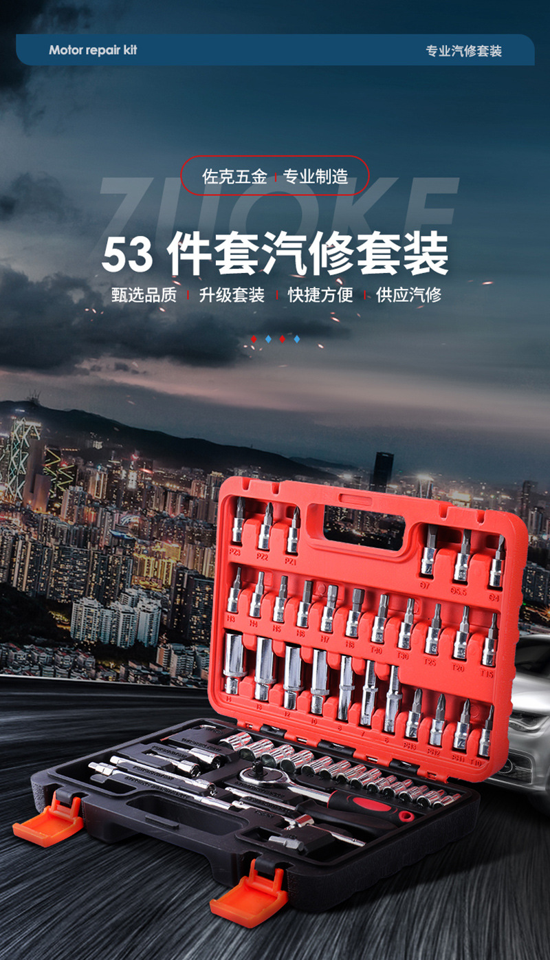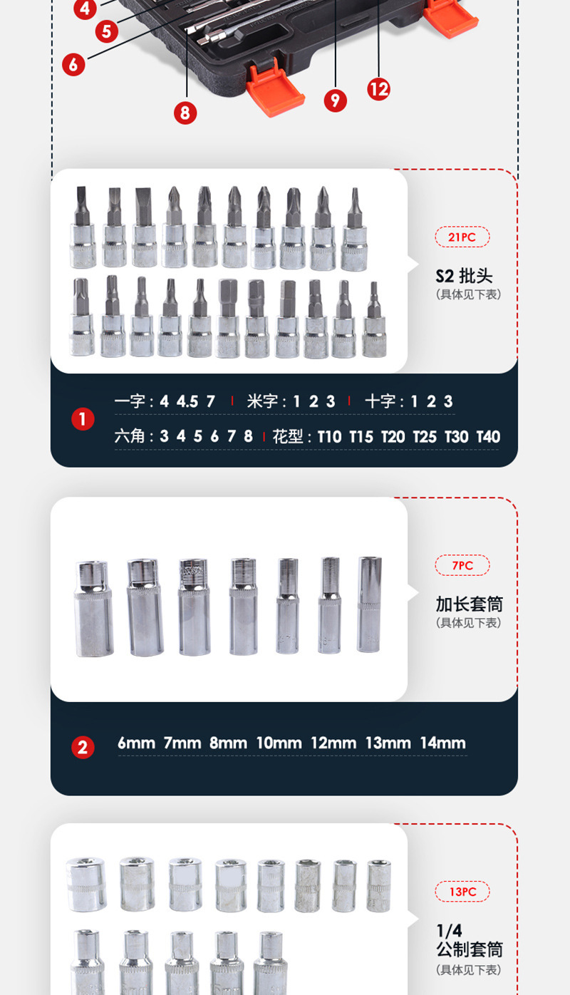 53件套筒组合套装批头套筒五金工具 维修组套巩固汽车维修工具盒