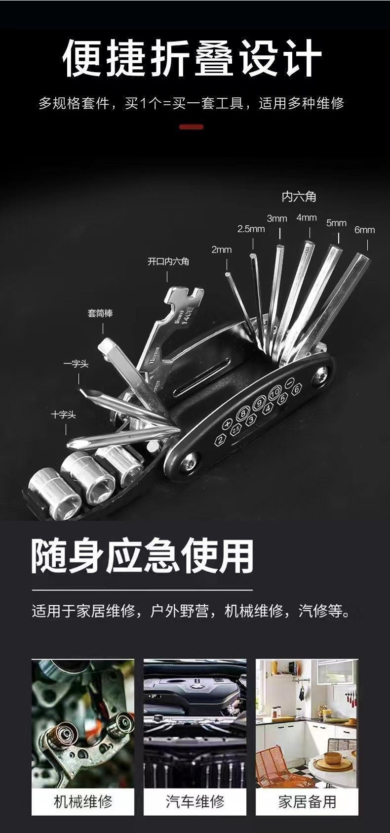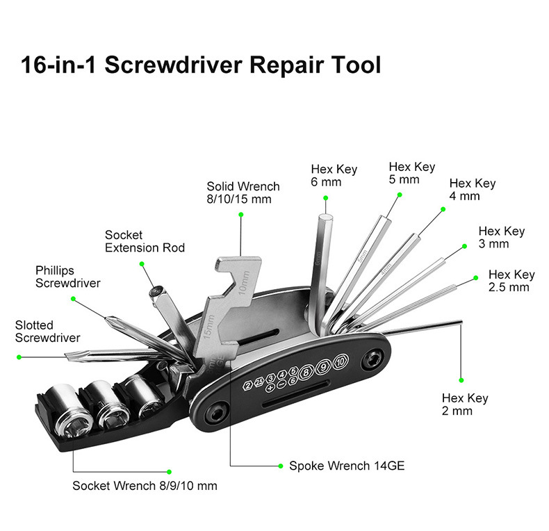 自行车维修组合工具16合一山地公路车多功能折叠修车补胎扳手套装