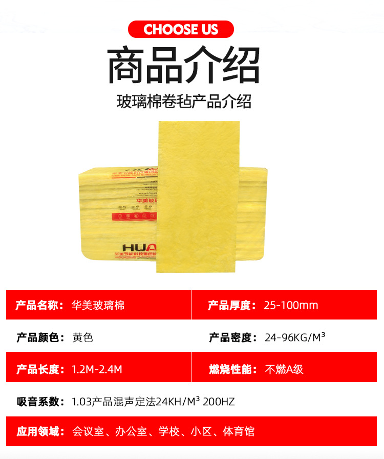 华美玻璃棉板防排烟耐火极限1小时隔热吸音棉消防绝热保温板材料