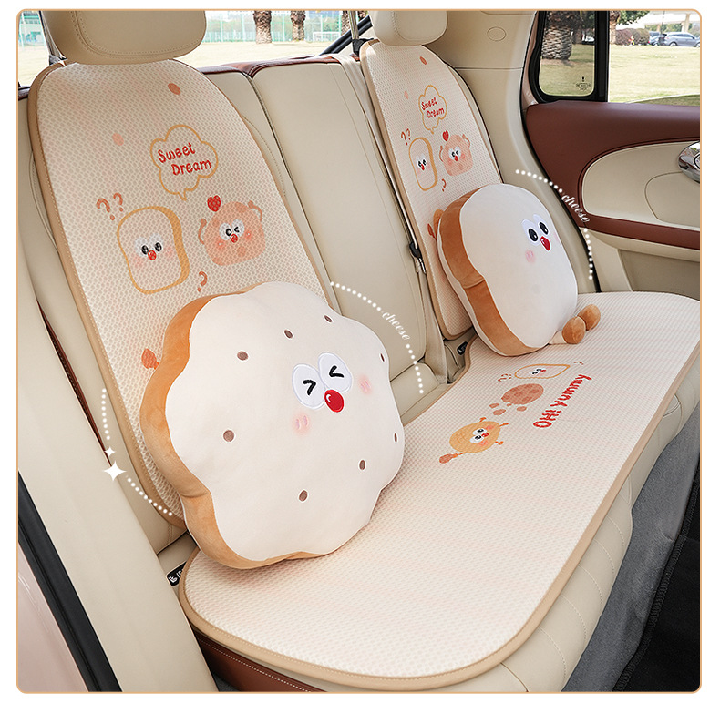 汽车坐垫四季通用创意奶酪饼干透气防滑车用座套卡通可爱车载座垫