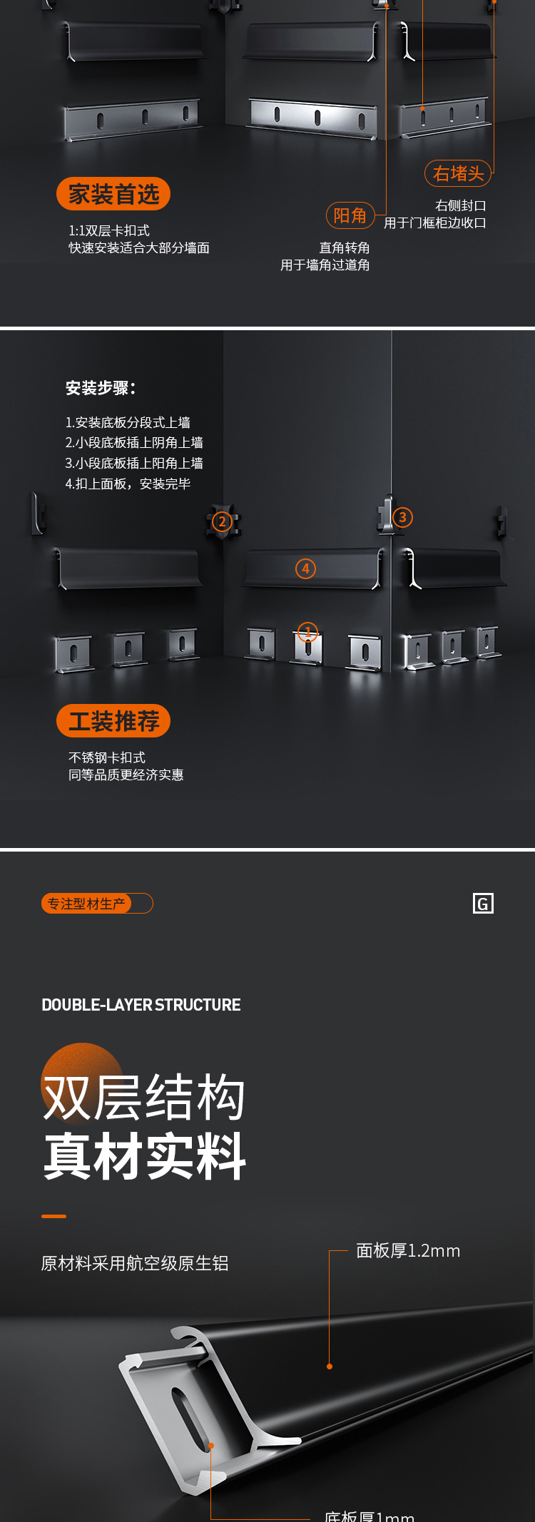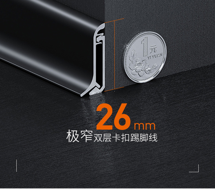 吉成铝合金踢脚线批发卡扣款家装超薄隐形2cm金属地脚线自粘批发