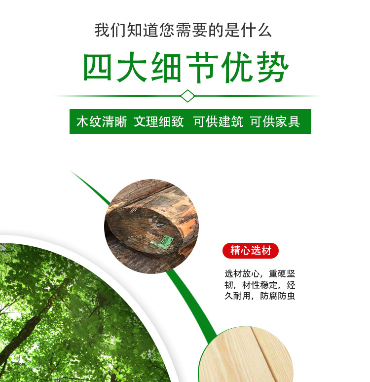 建筑木方白松樟子松无节材工程板材柳杉 装修吊顶木龙骨圆木